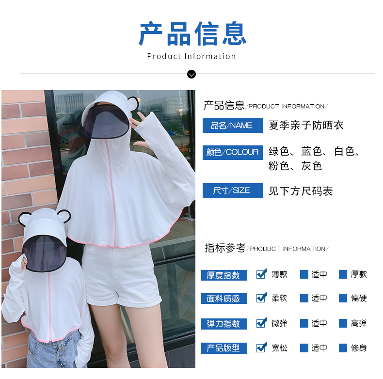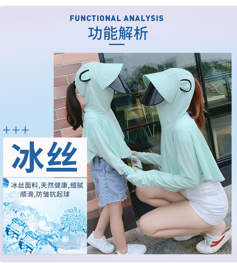 商品名称:2023新款冰丝薄款透气亲子儿童防晒服紫外线长袖骑车短款