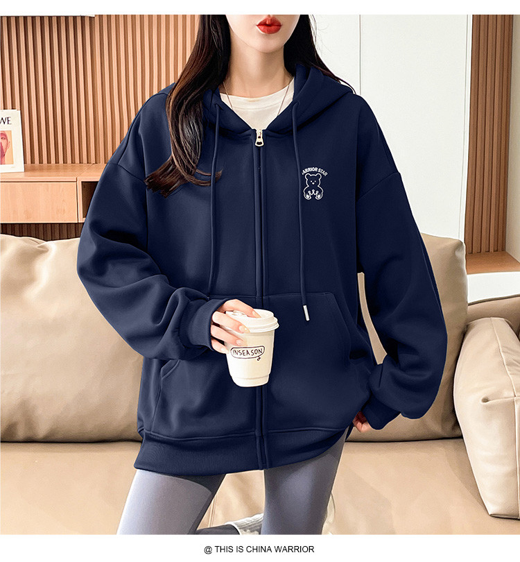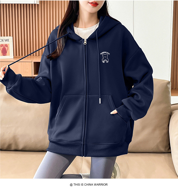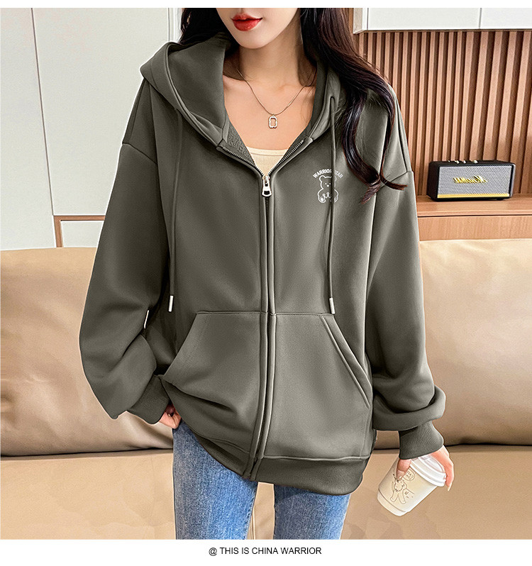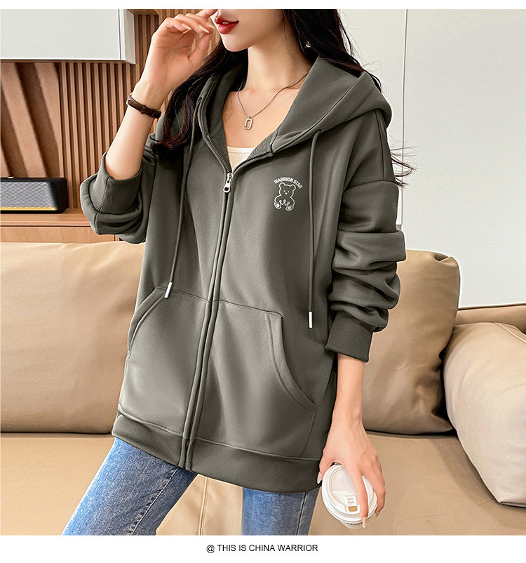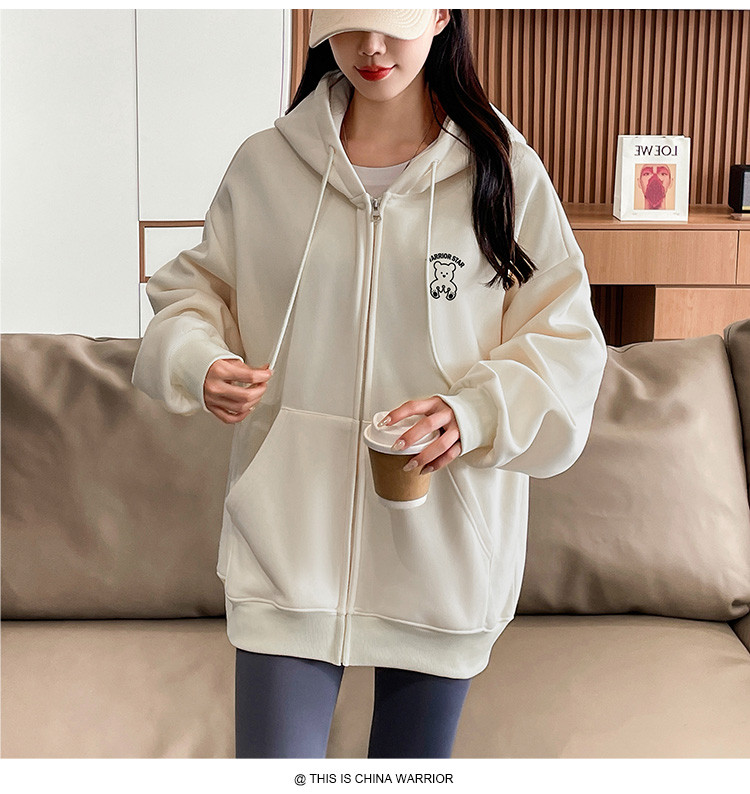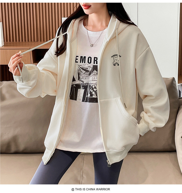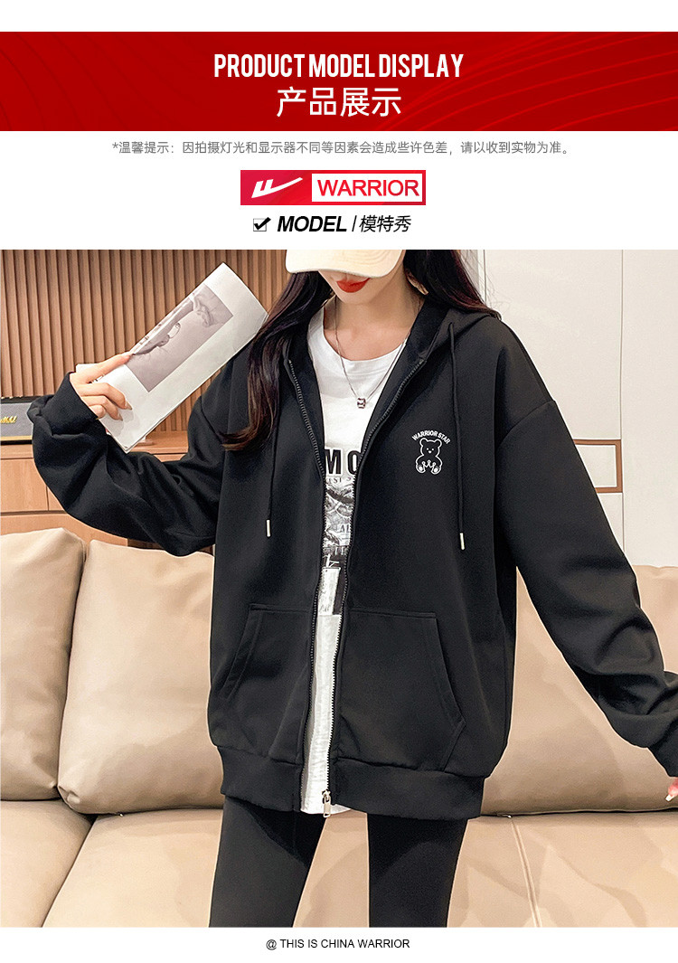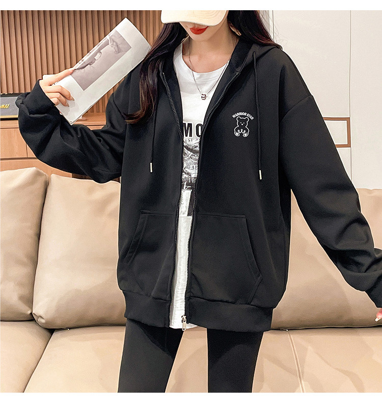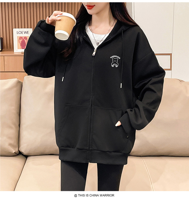 商品名称:【超值好货】春秋女士宽松卫衣连帽开衫上衣潮牌运动女款休闲外套 210195