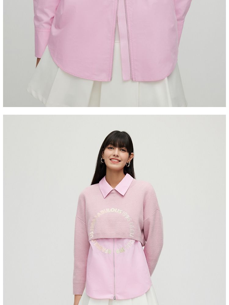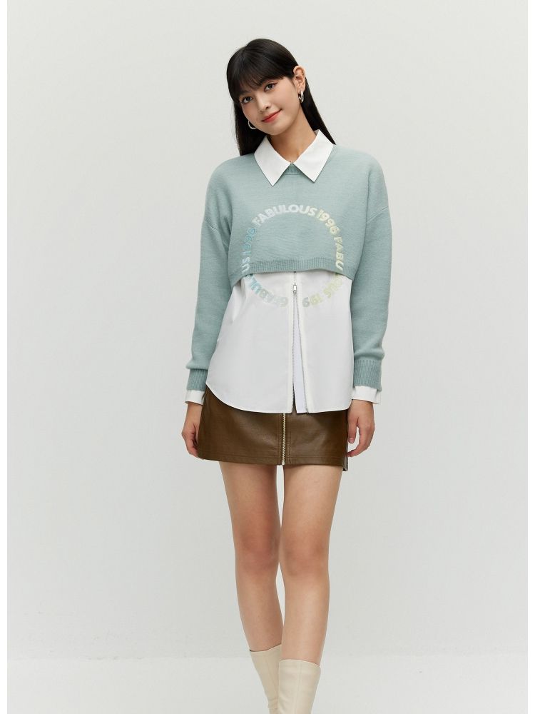 【学院风】夏季学院风拼接短款套装衬衫女 957786