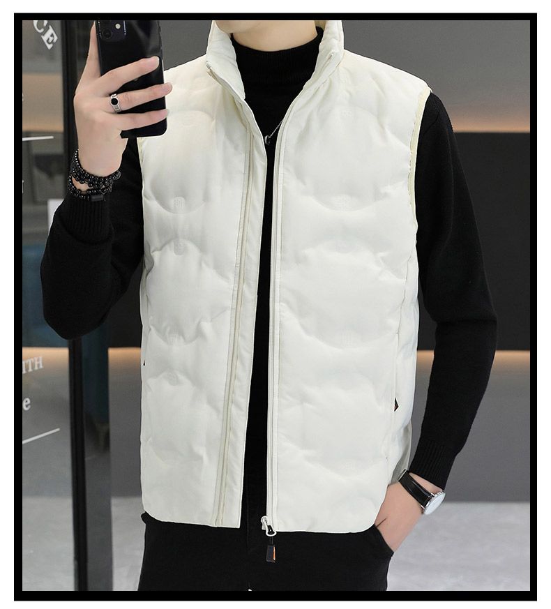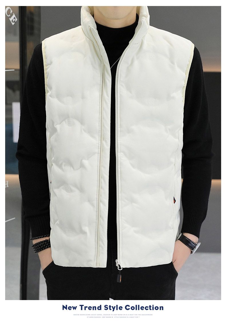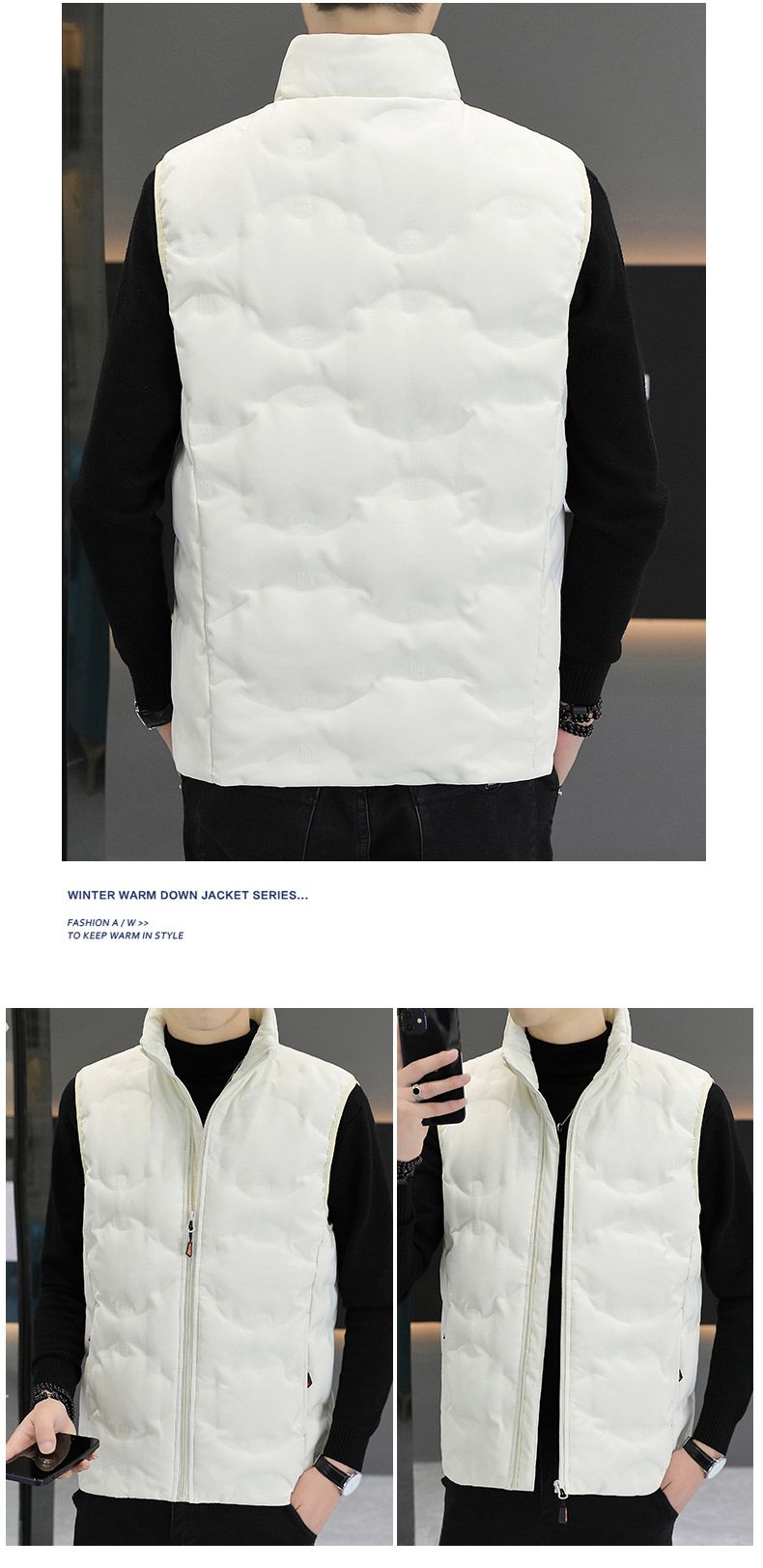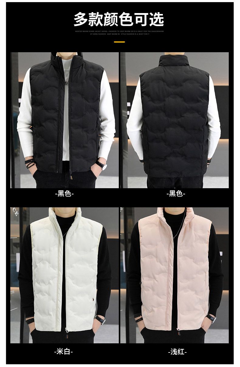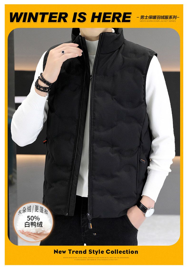 商品名称:曼西尔奴男士纯色加厚保暖白鸭绒宽松休闲百搭立领坎肩无袖羽绒马甲128263TM