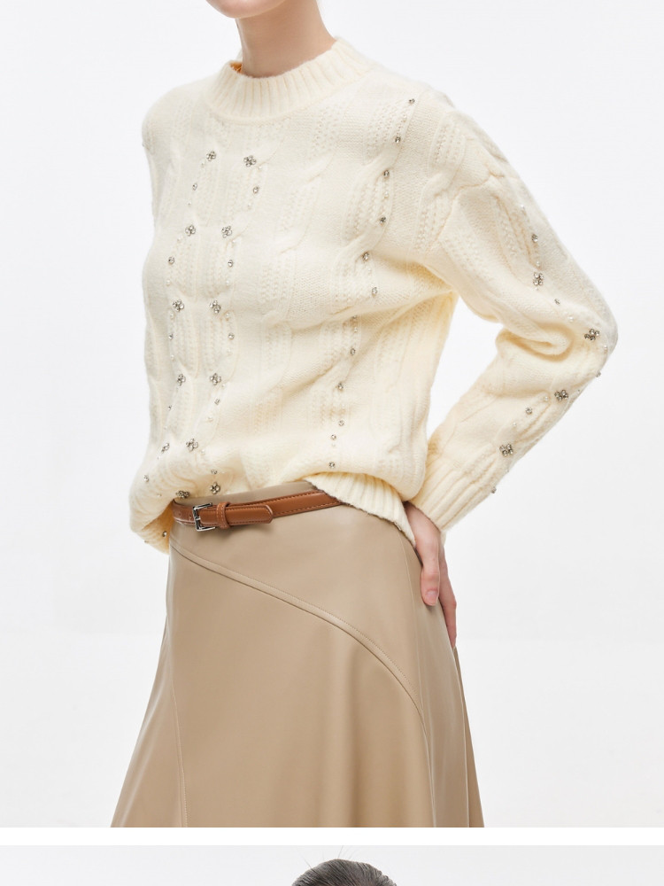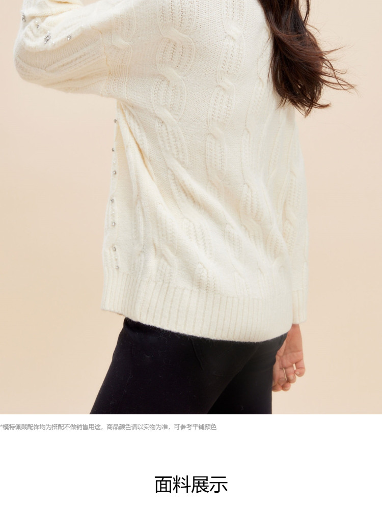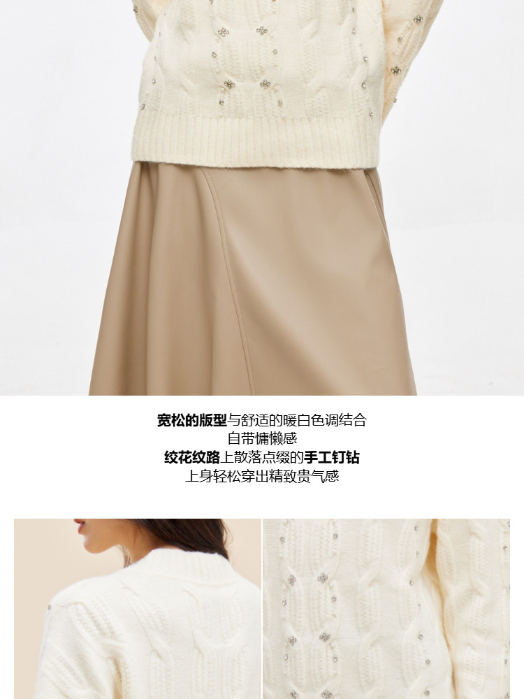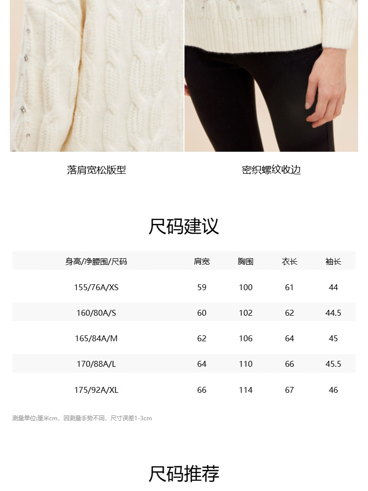 商品名称:【宽松落肩】春季绞花水钻螺纹宽松针织衫女 755418