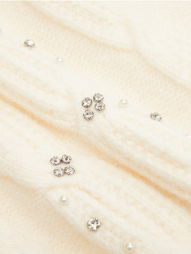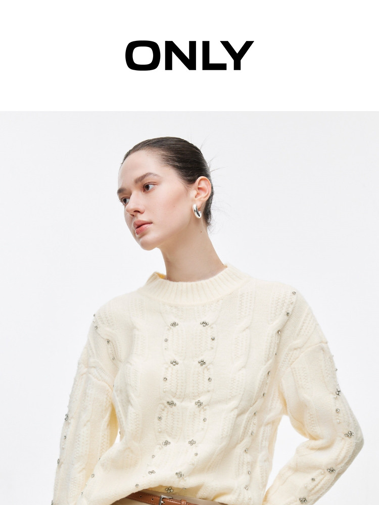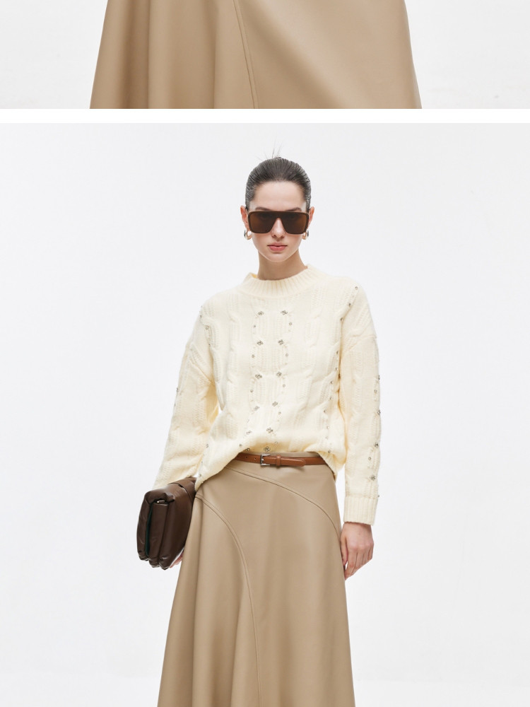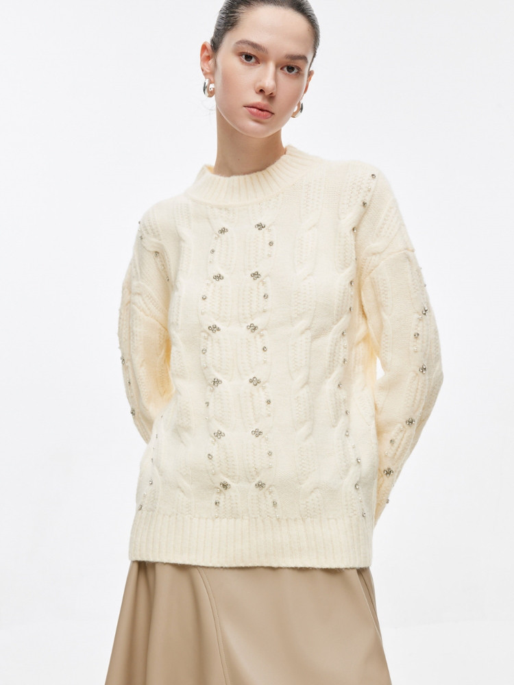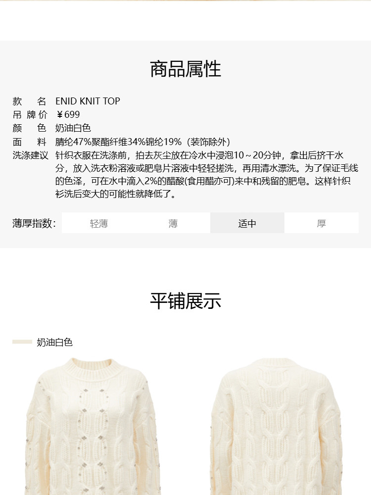 商品名称:【宽松落肩】春季绞花水钻螺纹宽松针织衫女 755418