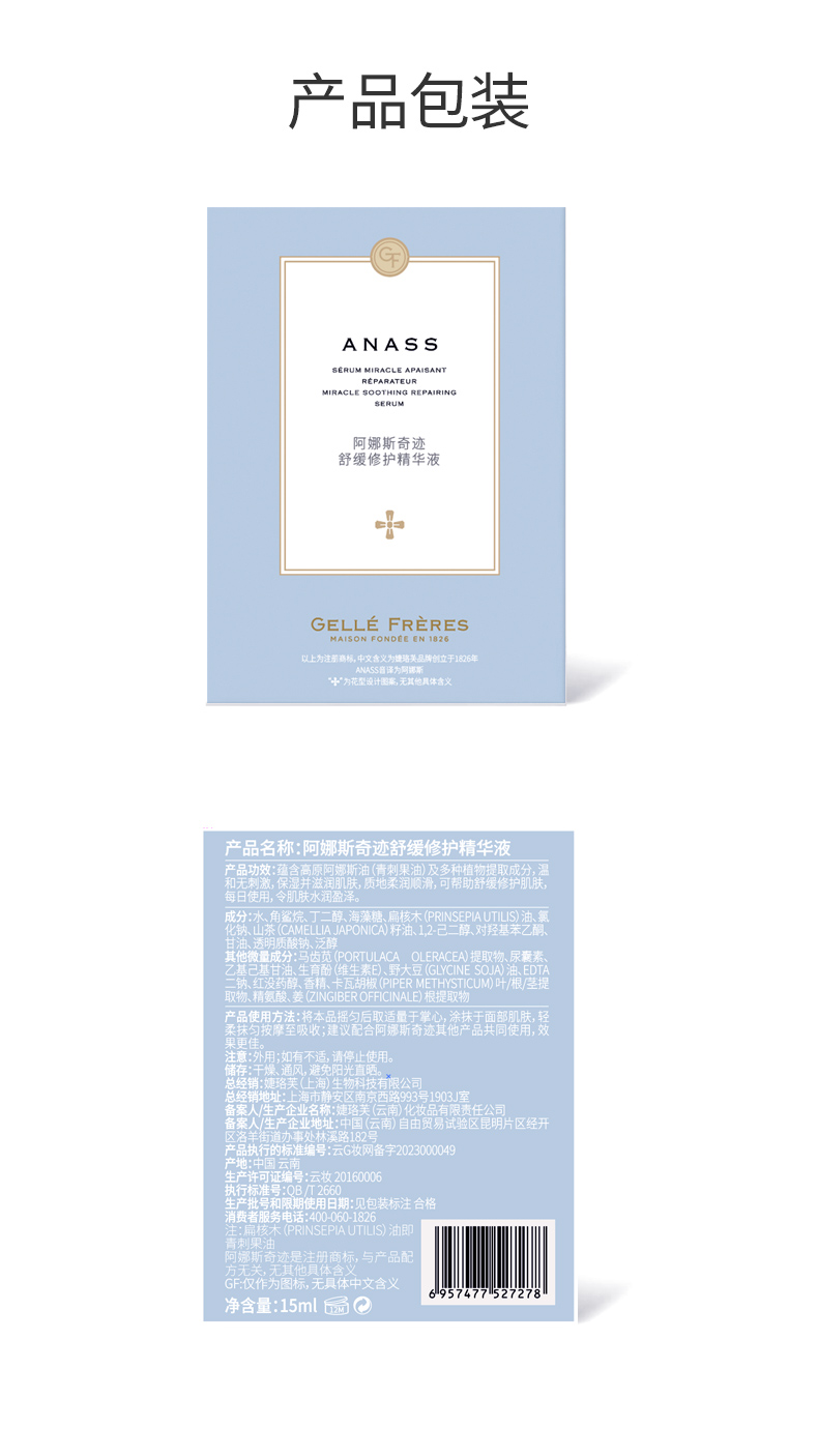 商品名称:婕珞芙 阿娜斯奇迹舒缓修护精华液 15ml