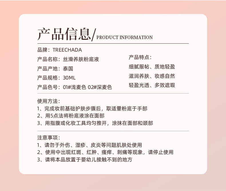 商品名称:泰国TREECHADA璀璨妲 丝滑粉底液30ml/瓶