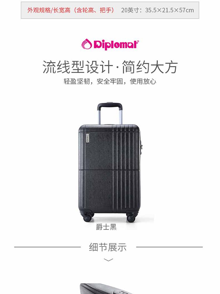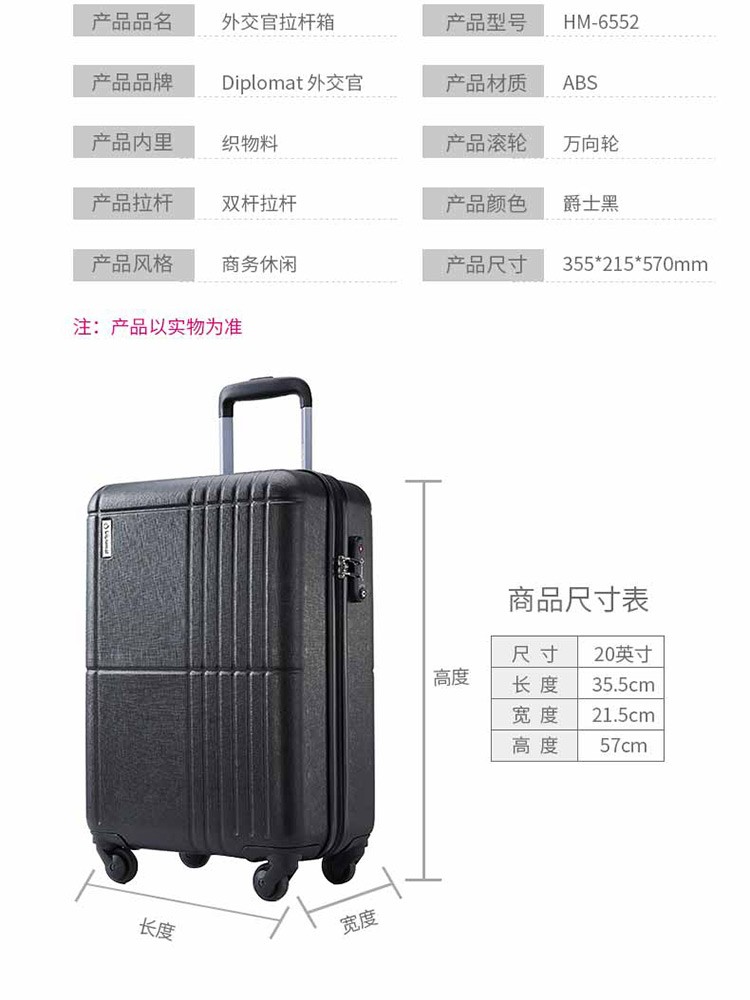 商品名称:外交官拉杆箱HM-6552-爵士黑-20英寸