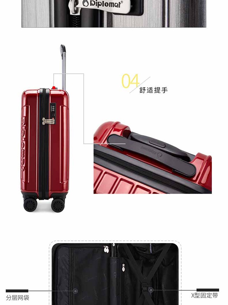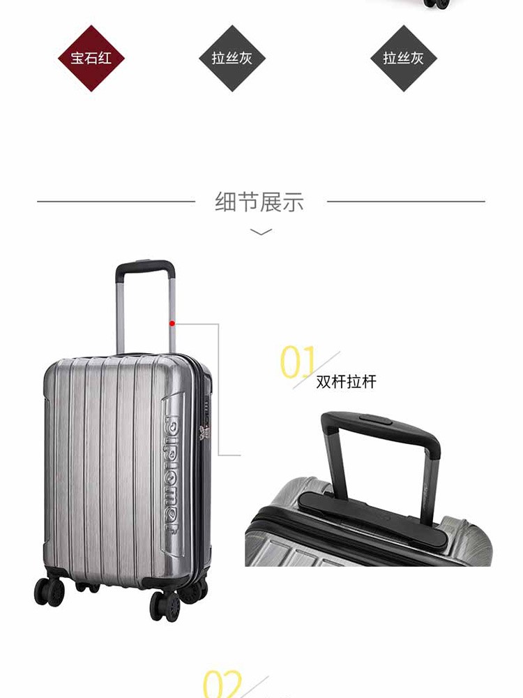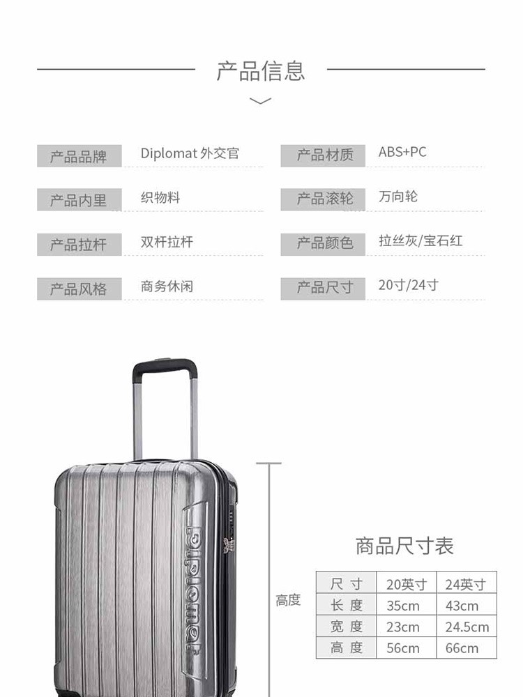 商品名称:外交官HM-6282拉杆箱-拉丝灰-20英寸
