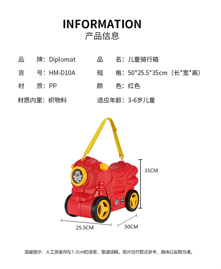 商品名称:外交官HM-D10A拉杆箱-红色-儿童拉杆箱