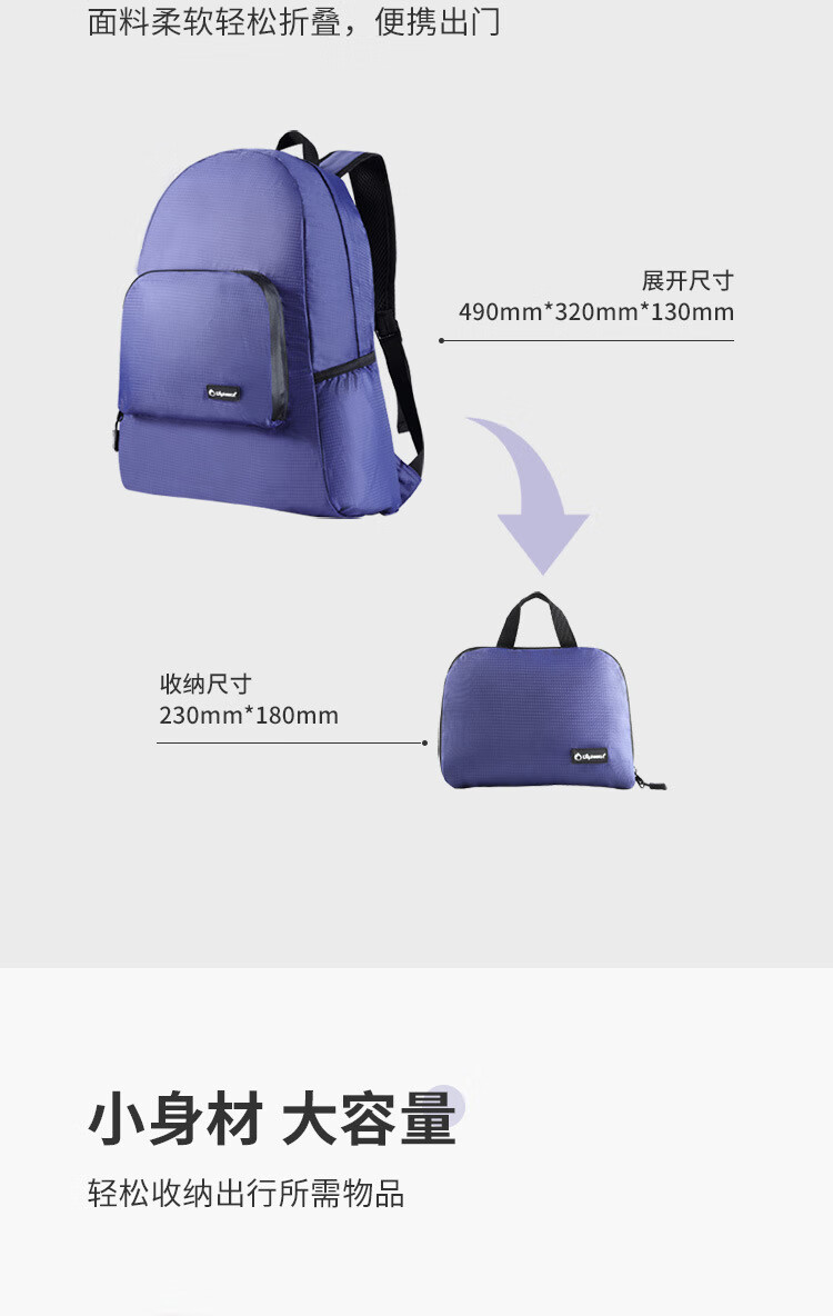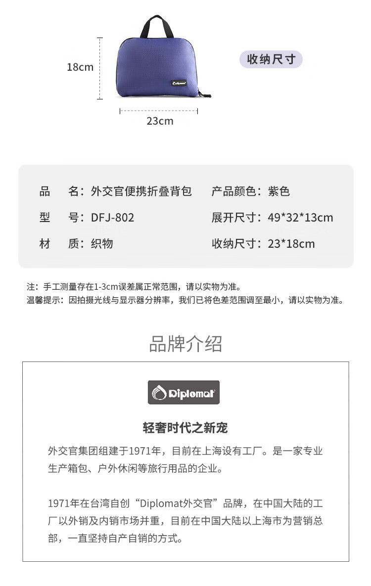 商品名称:外交官DFJ-802便携折叠背包-紫色