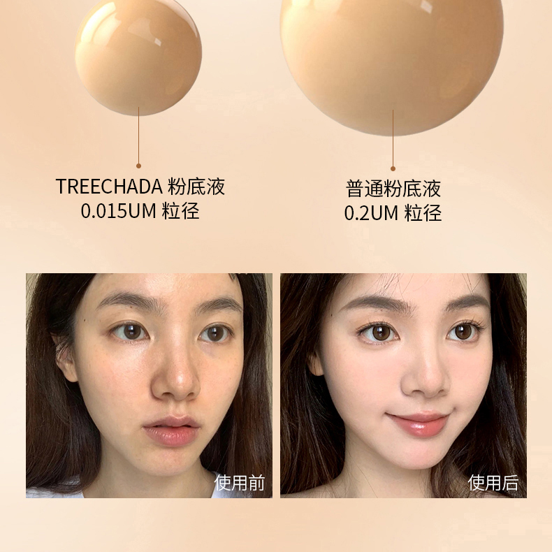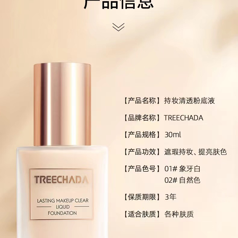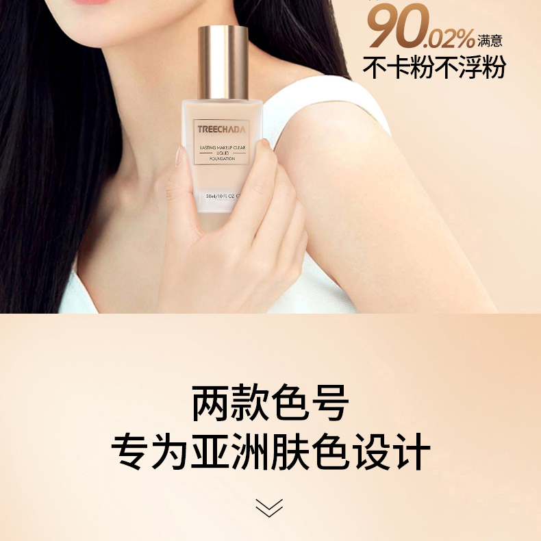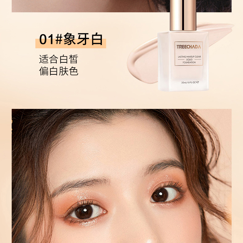 TREECHADA 丝滑养肤粉底液保湿遮瑕隐形毛孔清透水润平价提亮