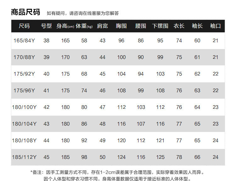 | 尺码 | 衣长(cm) | 肩宽(cm) | 腰围(cm) | 袖长(cm) | 胸围(cm) | 下摆围(cm) | 号型 |