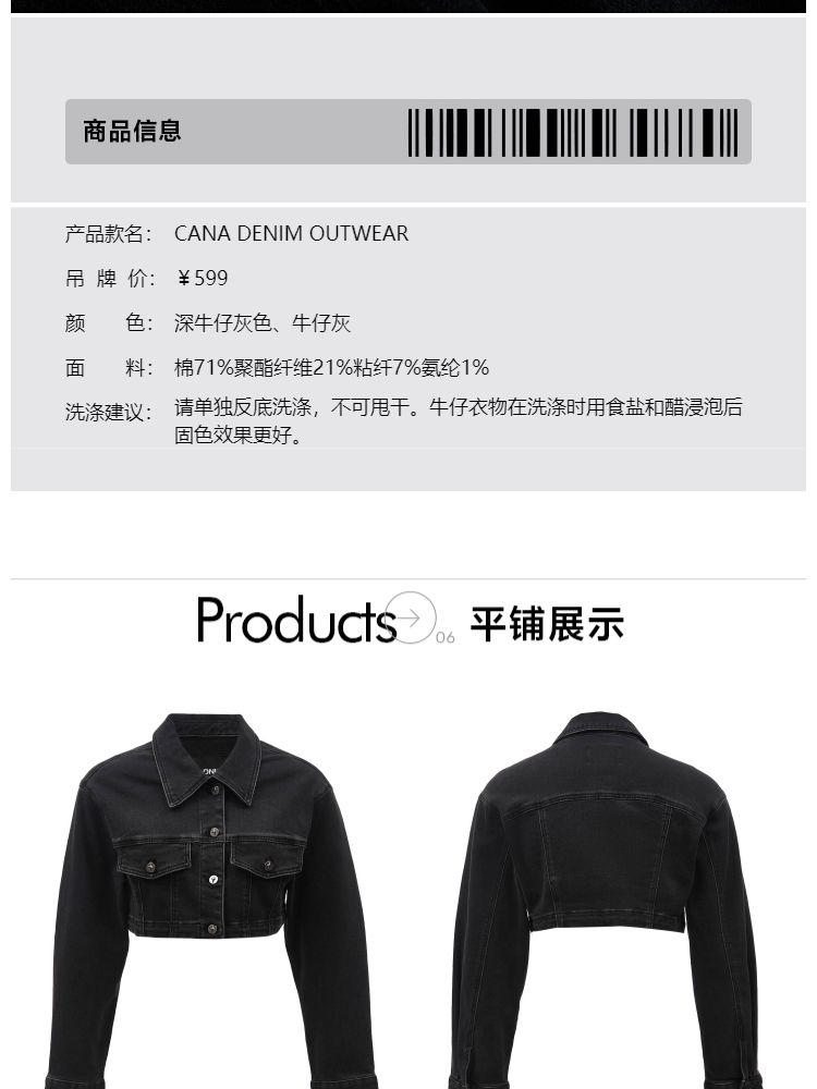 商品名称:【气质百搭】春季时尚气质百搭翻领短款牛仔外套女 575514