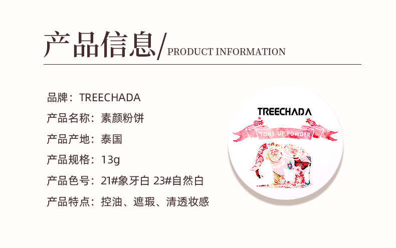 商品名称:泰国TREECHADA璀璨妲 素颜粉饼13g/盒