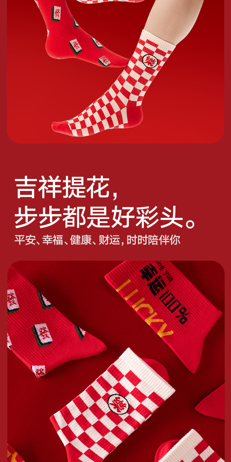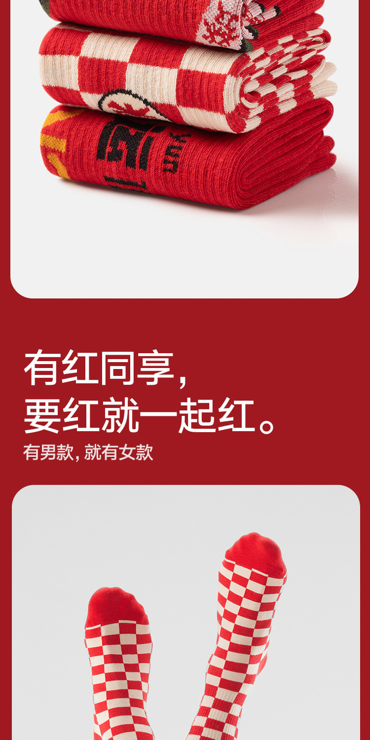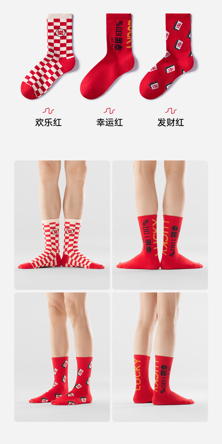 商品名称:【鸿运礼盒】3双装男士袜子抑菌防臭男袜本命蛇年红色婚假中筒袜 260762