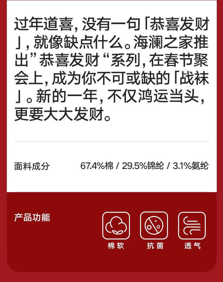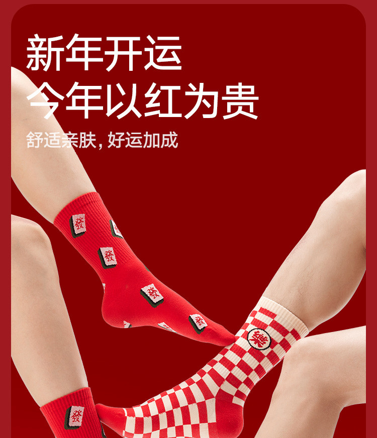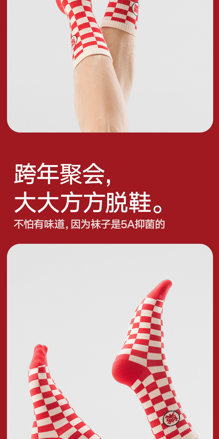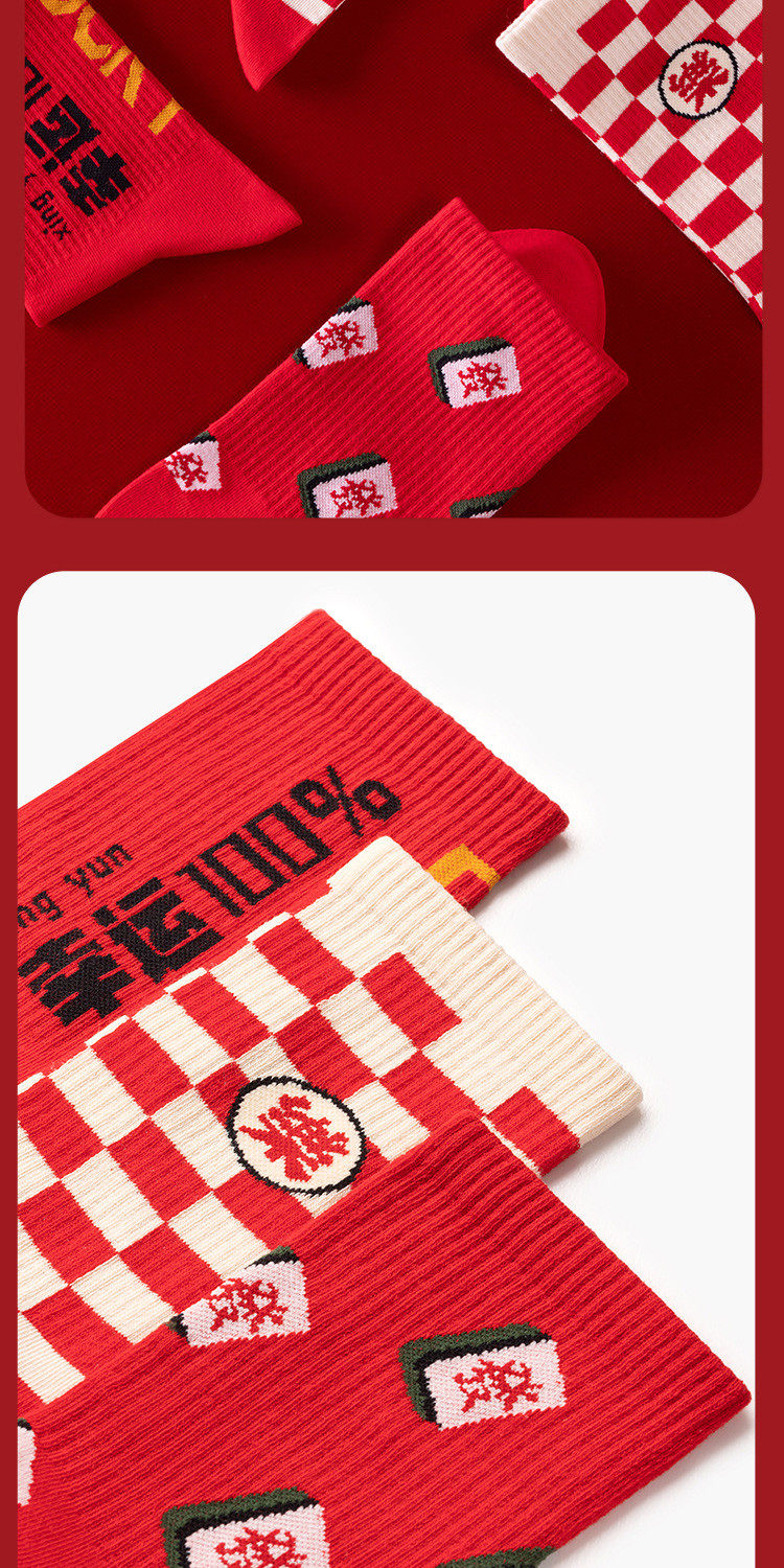 商品名称:【鸿运礼盒】3双装男士袜子抑菌防臭男袜本命蛇年红色婚假中筒袜 260762