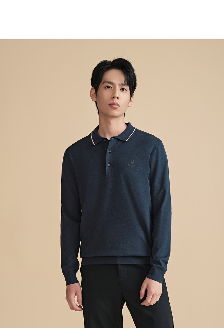 商品名称:【轻薄水洗】春秋热销撞色翻领字母印花保暖男士长袖针织衫 684232