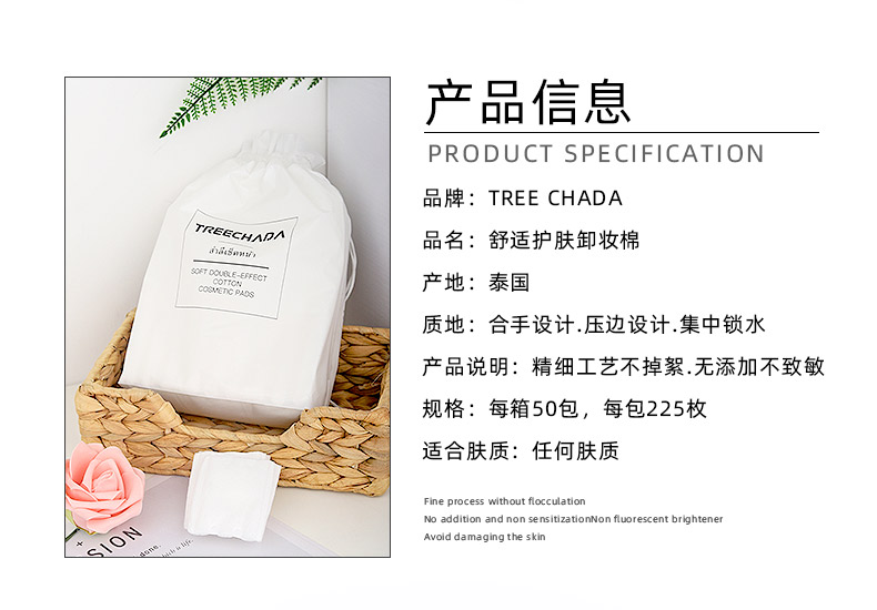 商品名称:泰国TREECHADA璀璨妲 化妆棉225片/包