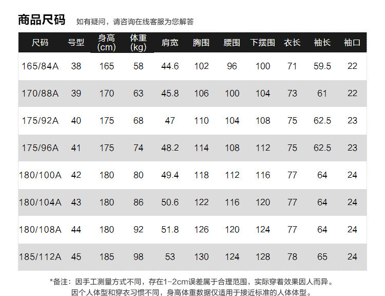 | 尺码 | 衣长(cm) | 肩宽(cm) | 腰围(cm) | 袖长(cm) | 胸围(cm) | 下摆围(cm) | 号型 |
