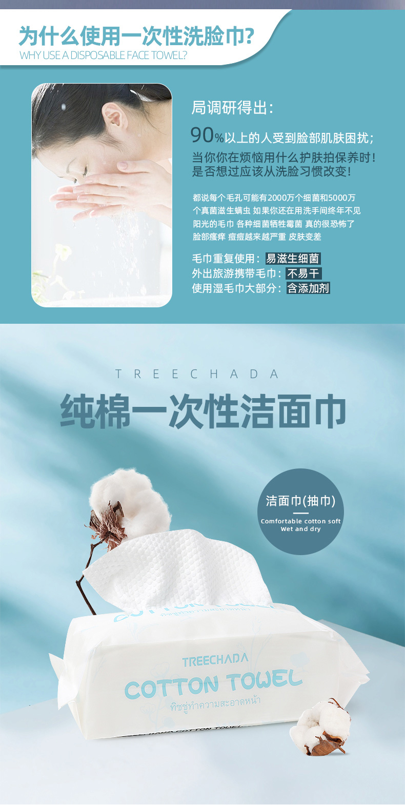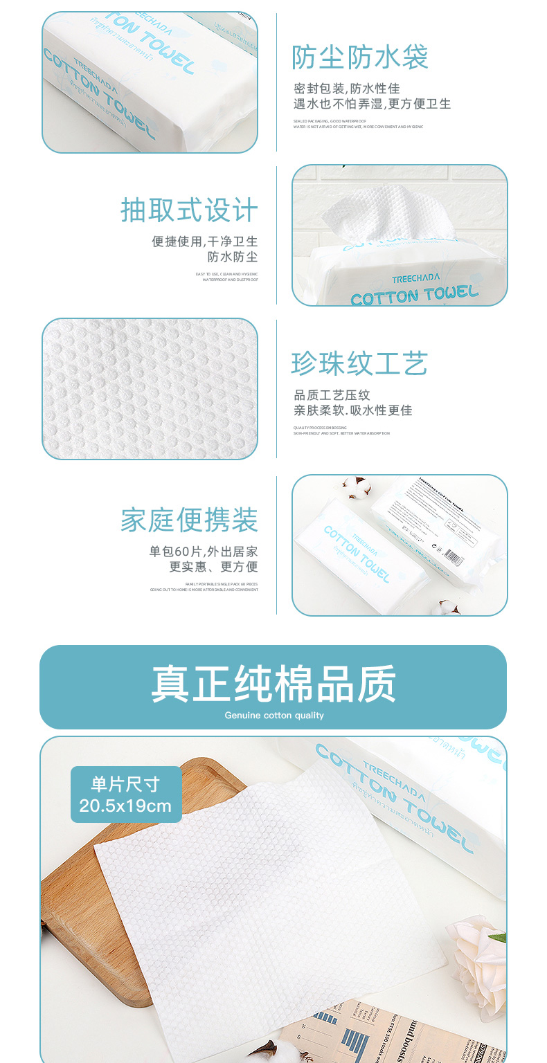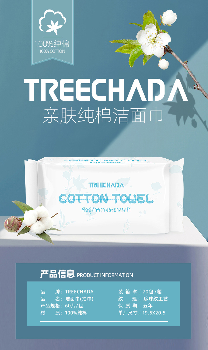 商品名称:泰国TREECHADA璀璨妲 全棉洁面巾(抽取式巾) 60片/包