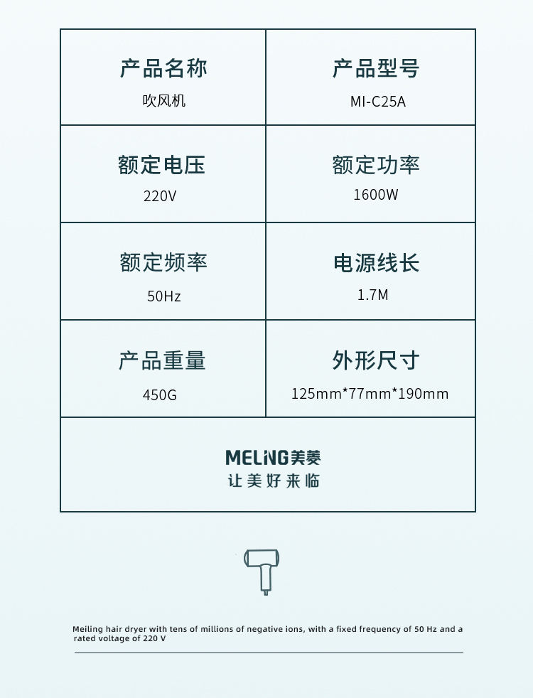 商品名称:美菱MI-C26A吹风机绿色
