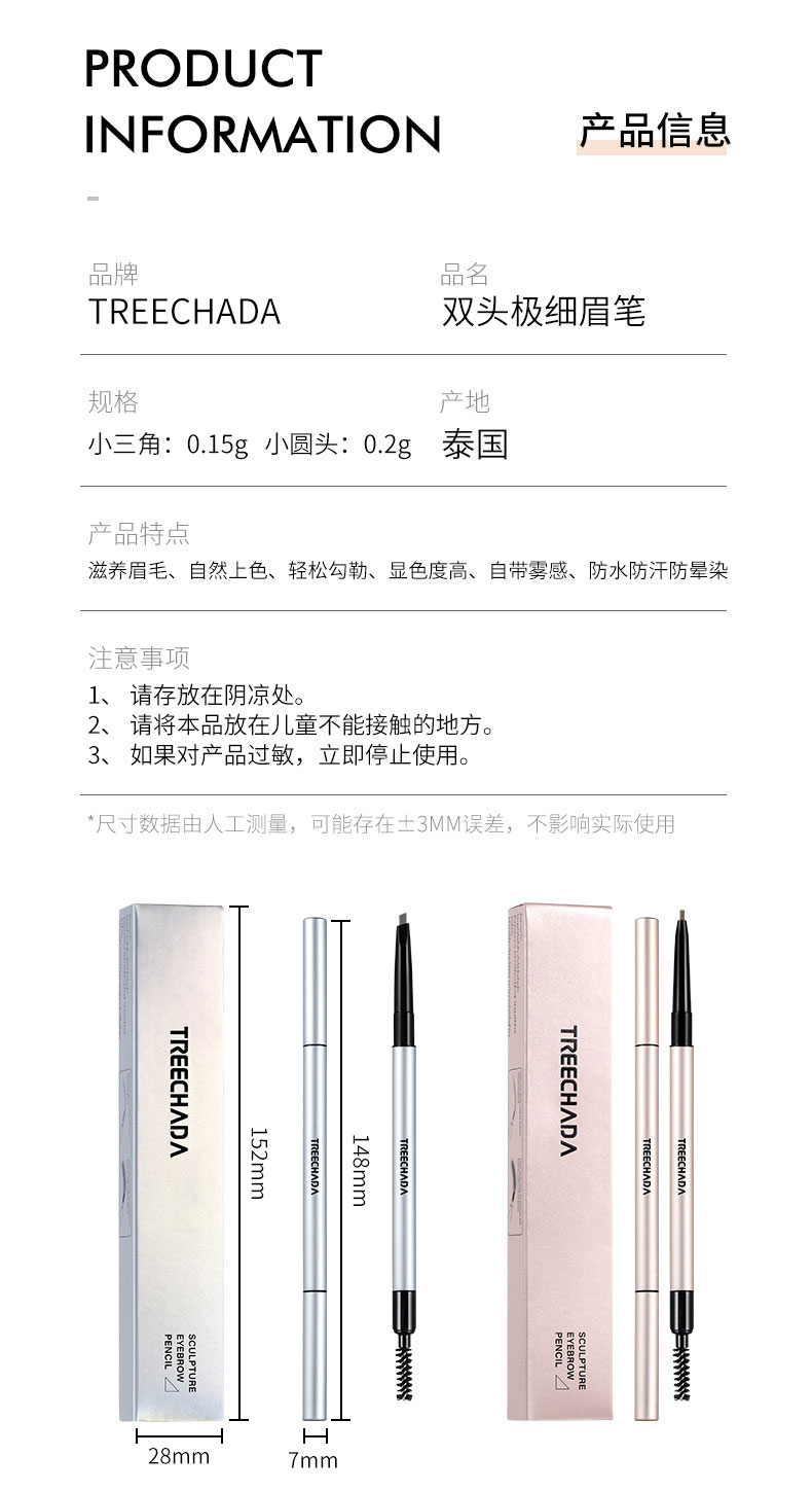 商品名称:泰国TREECHADA璀璨妲 极细眉笔(小三角/小圆头两款)
