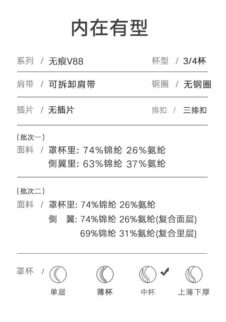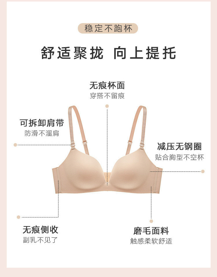 商品名称:【向上聚拢 侧收提托】光面无痕舒适减压无钢圈小胸聚拢文胸内衣 182939