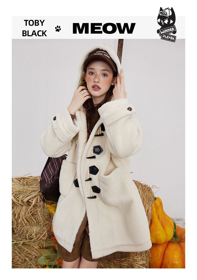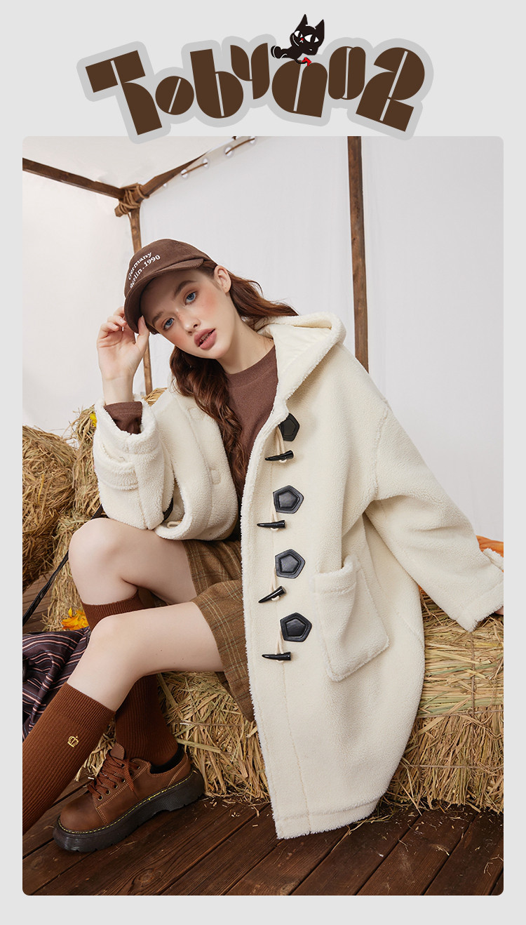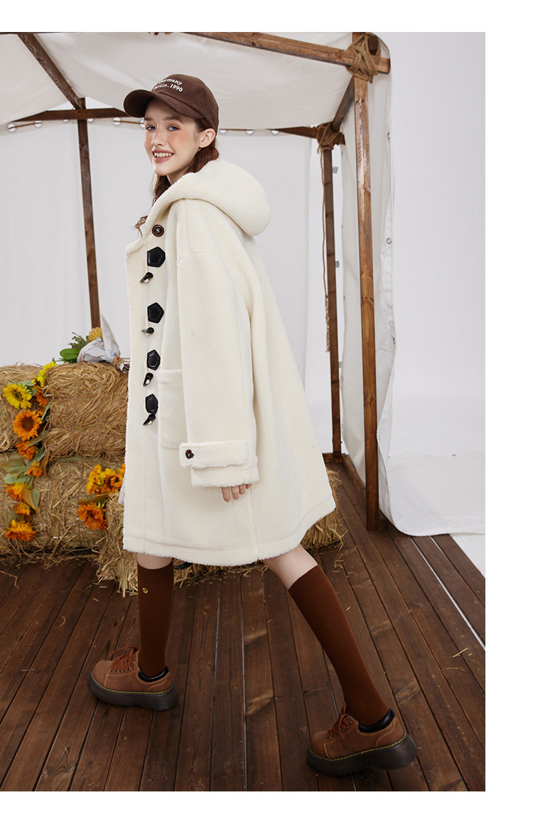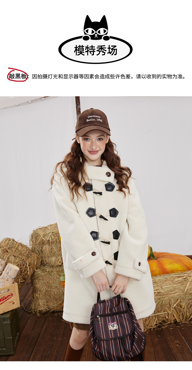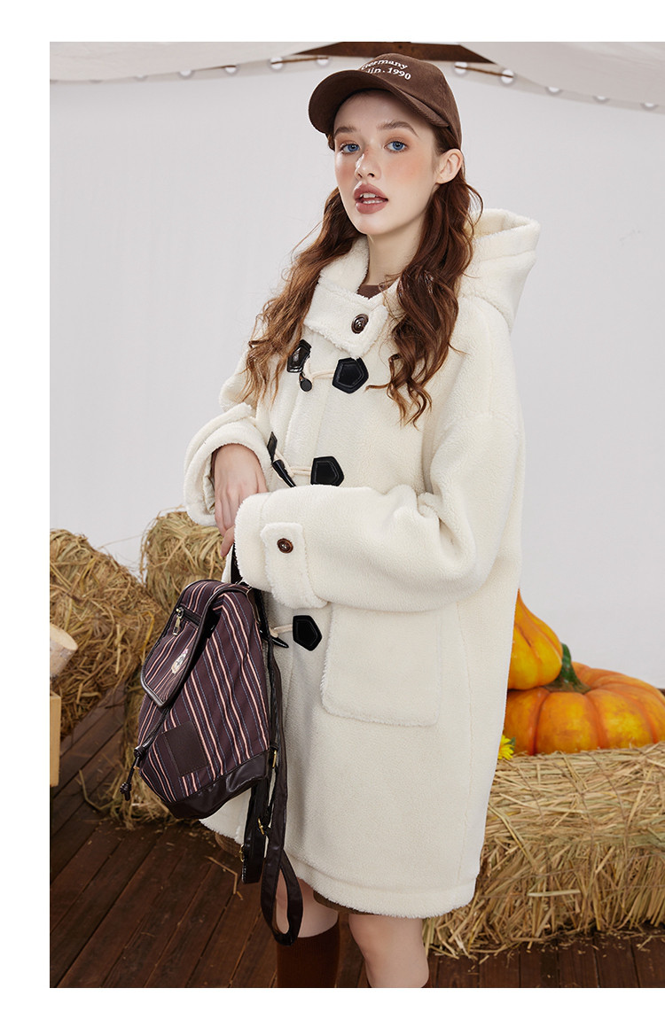 商品名称:夹棉加厚保暖女式棉衣新仿羊羔毛长款牛角扣大衣 478301