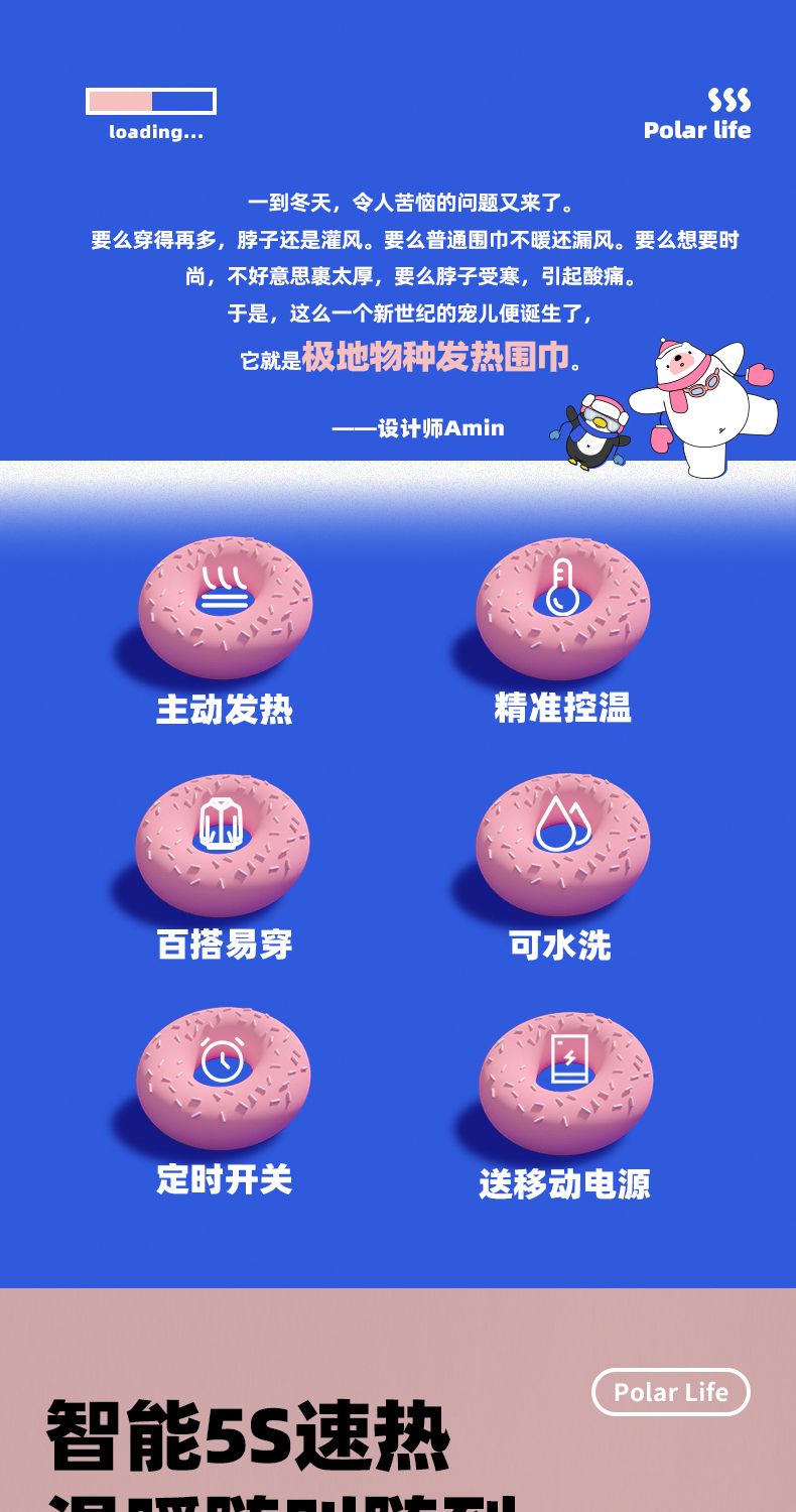商品名称:极地物种 发热围巾加热围脖颈部保暖热敷脖子取暖石墨烯秋冬智能充电暖脖 【发热围巾】+移动电源