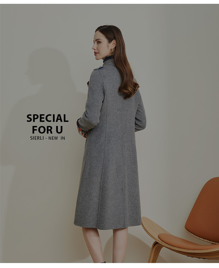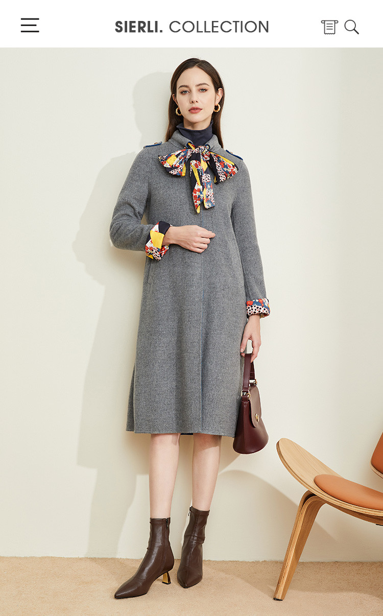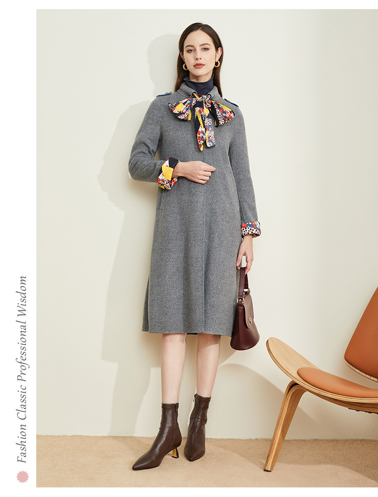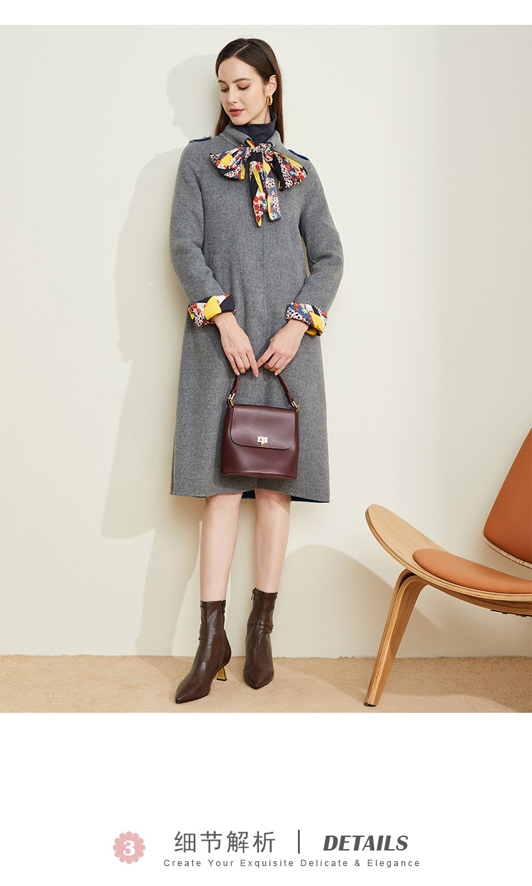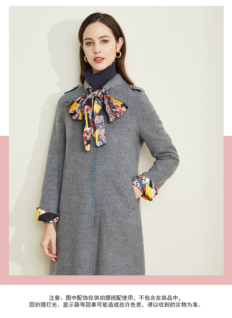 商品名称:[商场同款]秋冬丝巾饰修身显瘦简约纯色中长款羊毛大衣女外套 880351
