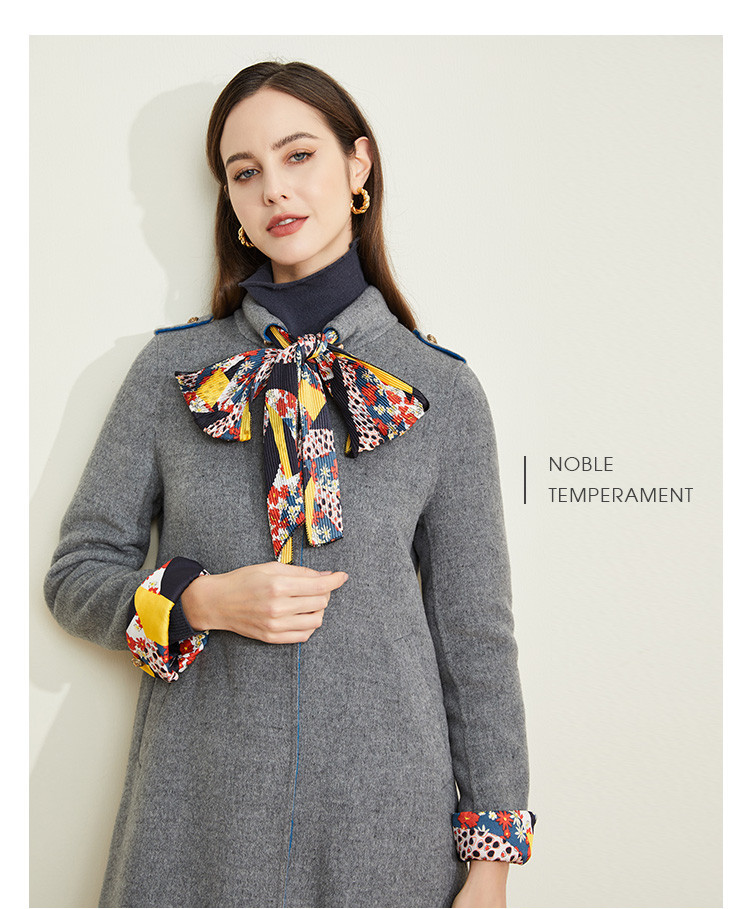 [商场同款]秋冬丝巾饰修身显瘦简约纯色中长款羊毛大衣女外套 880351