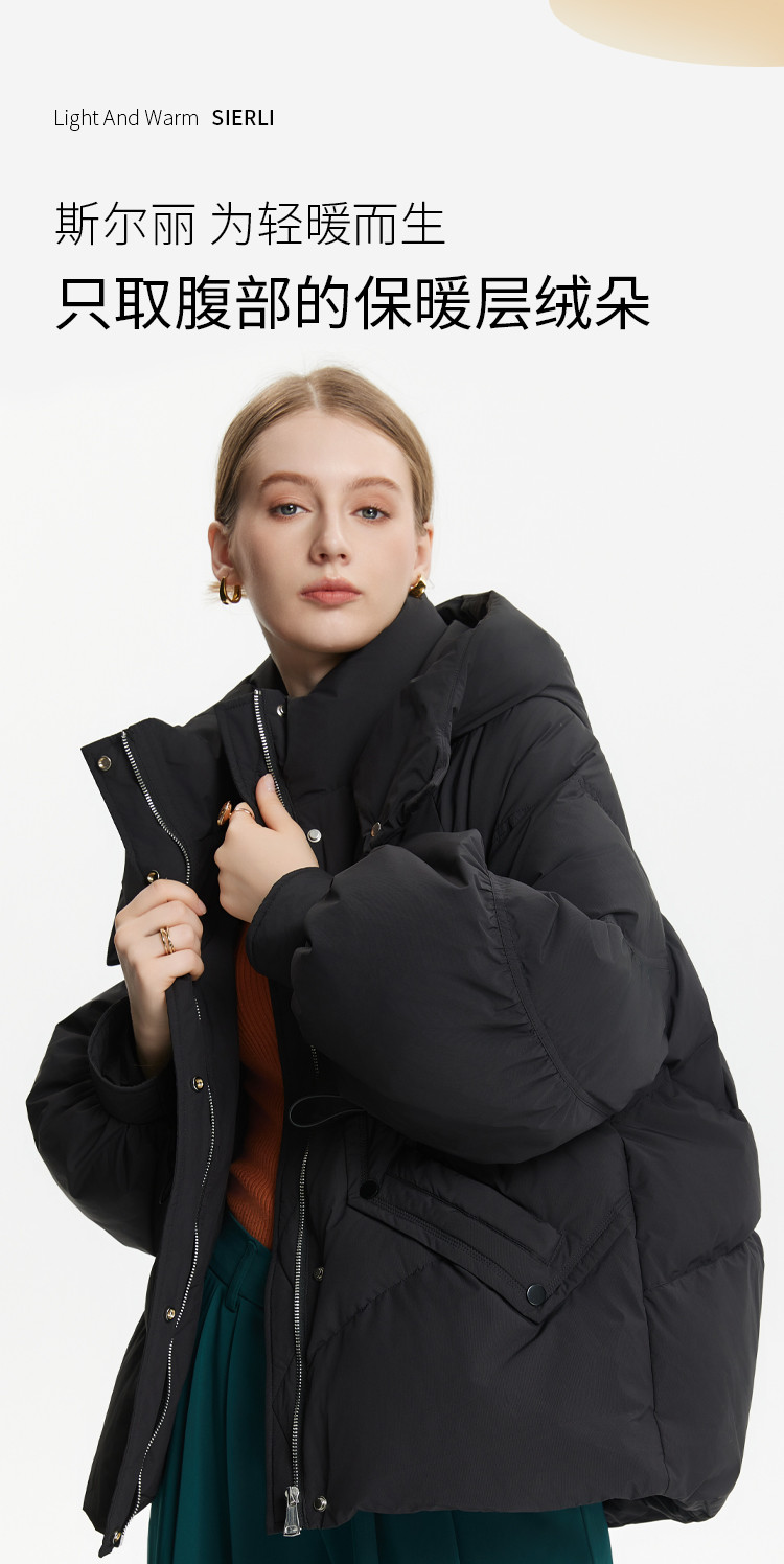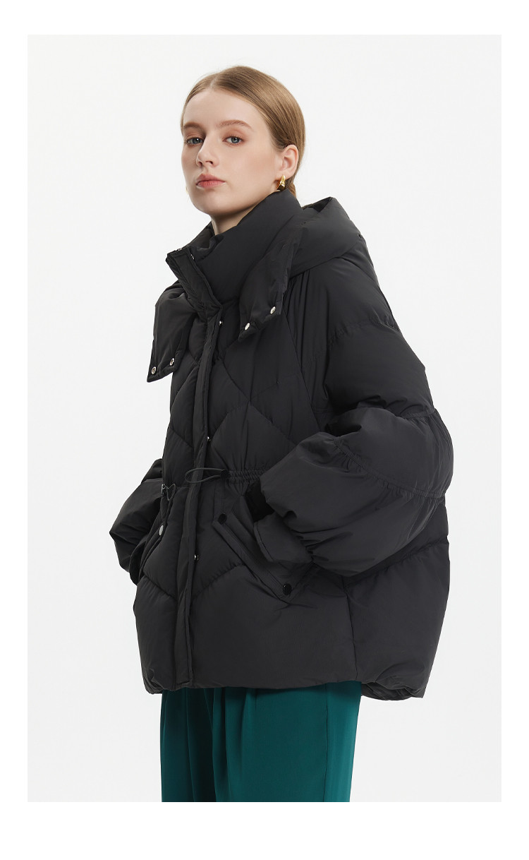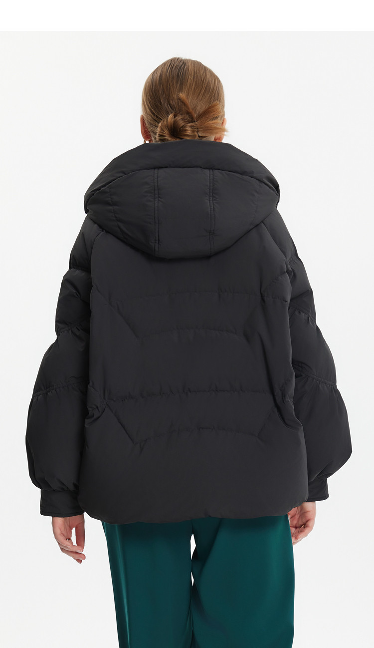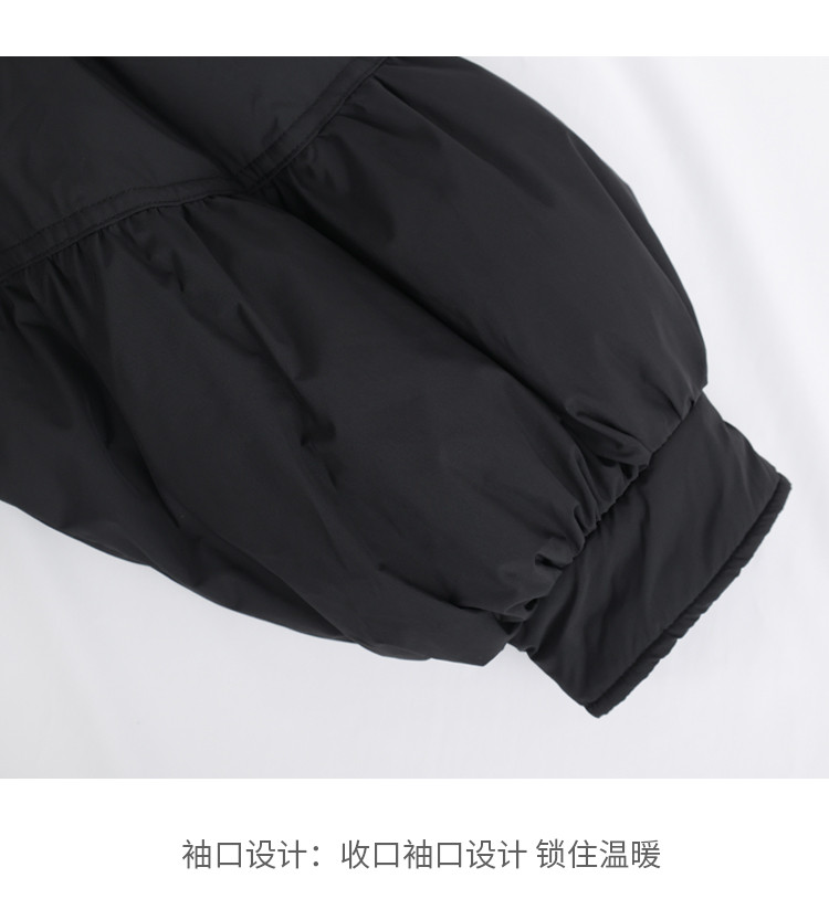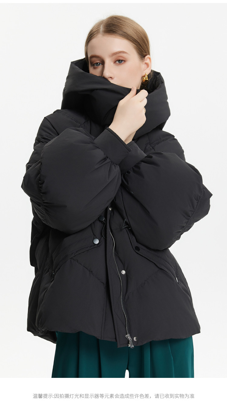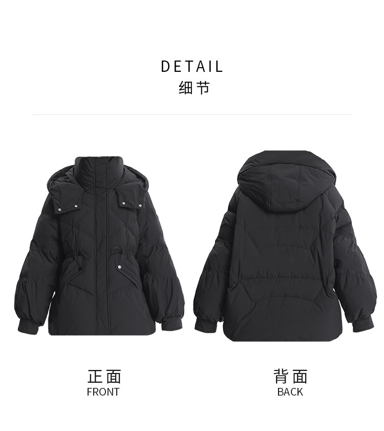商品名称:纯色面包服新国标舒适90绒女宽松连帽短款羽绒服 147359