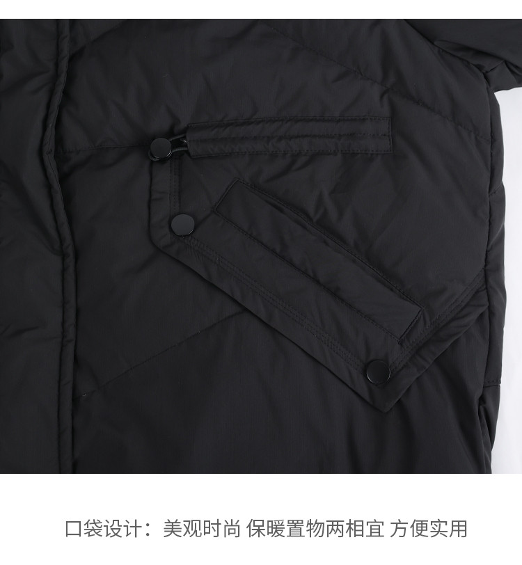 复古纯色厚款蓄暖带帽可拆直筒遮肉女式中长款羽绒服 911903