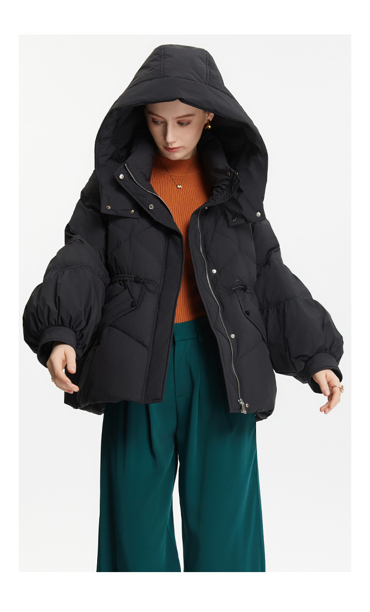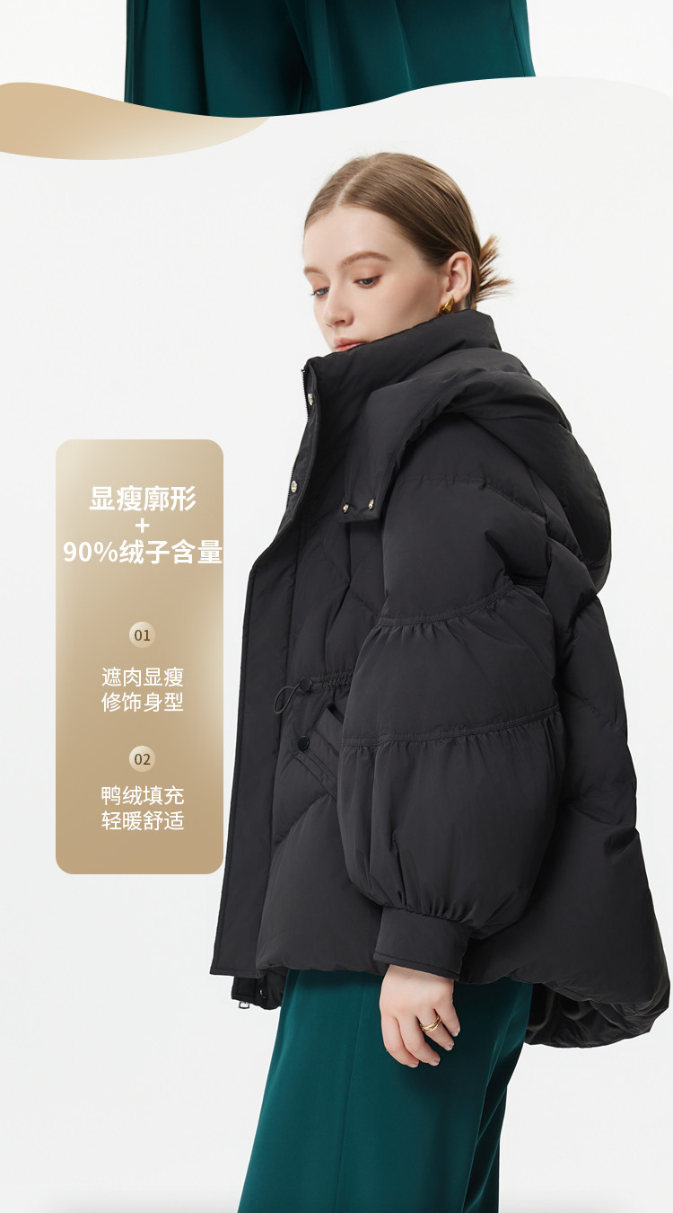 纯色面包服新国标舒适90绒女宽松连帽短款羽绒服 147359