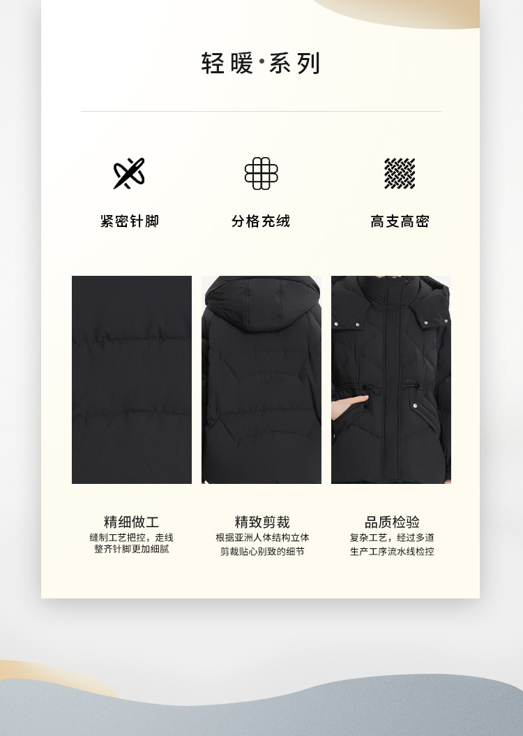 【仙·羽绒】玖姿旗下安娜蔻系列连帽防风白鹅绒中长羽绒服女冬季 639884