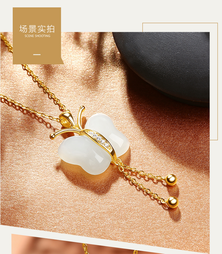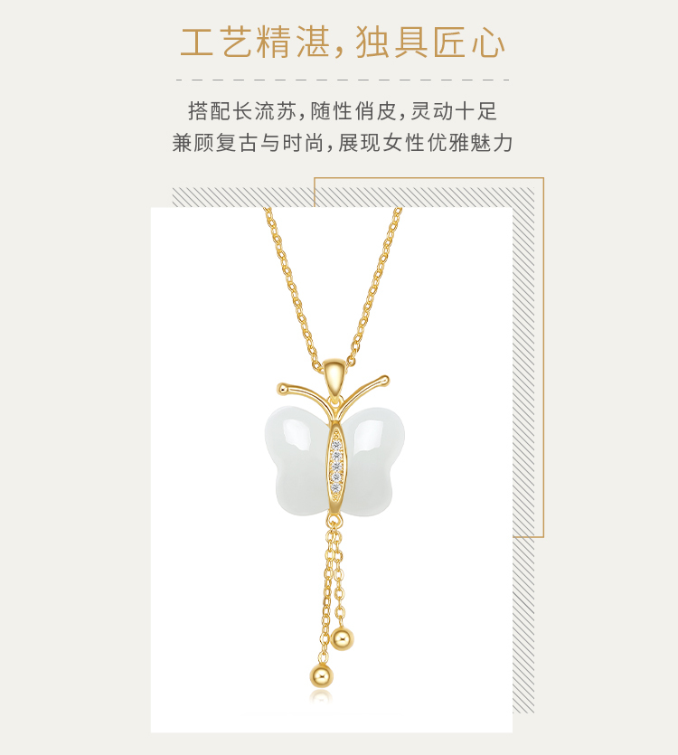 周六福S925银和田白玉蜕变吊坠项链