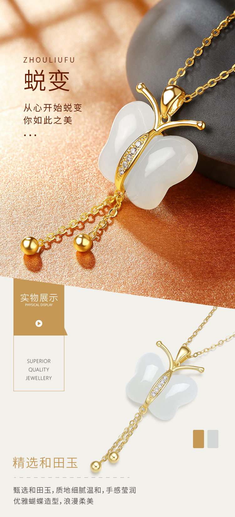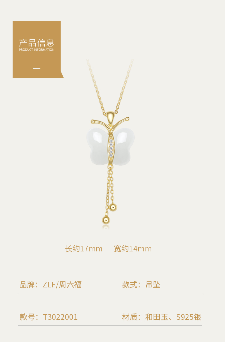 商品名称:周六福S925银和田白玉蜕变吊坠项链