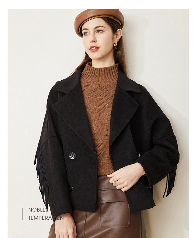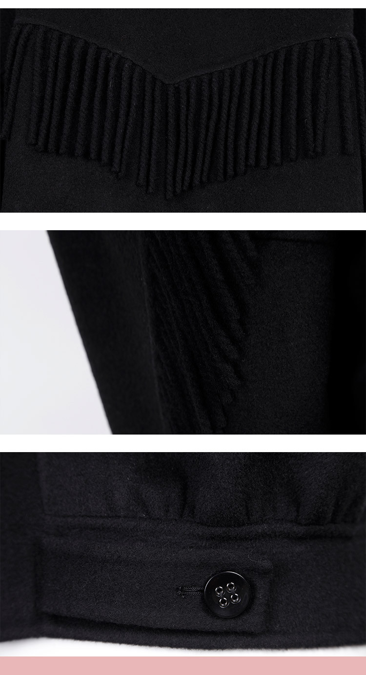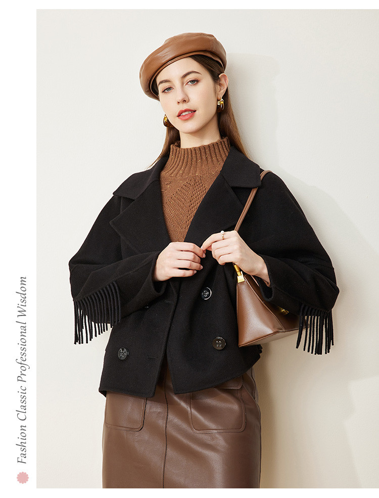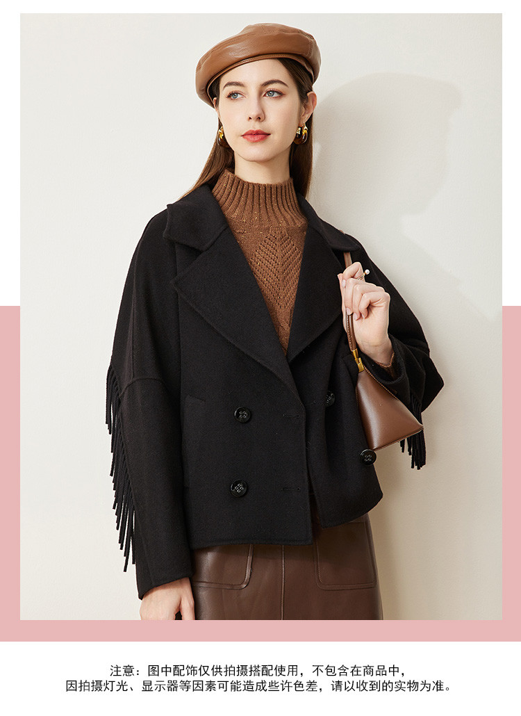 [潮流时尚流苏翻领廓形]秋冬季通勤外套短款羊毛大衣女 710239