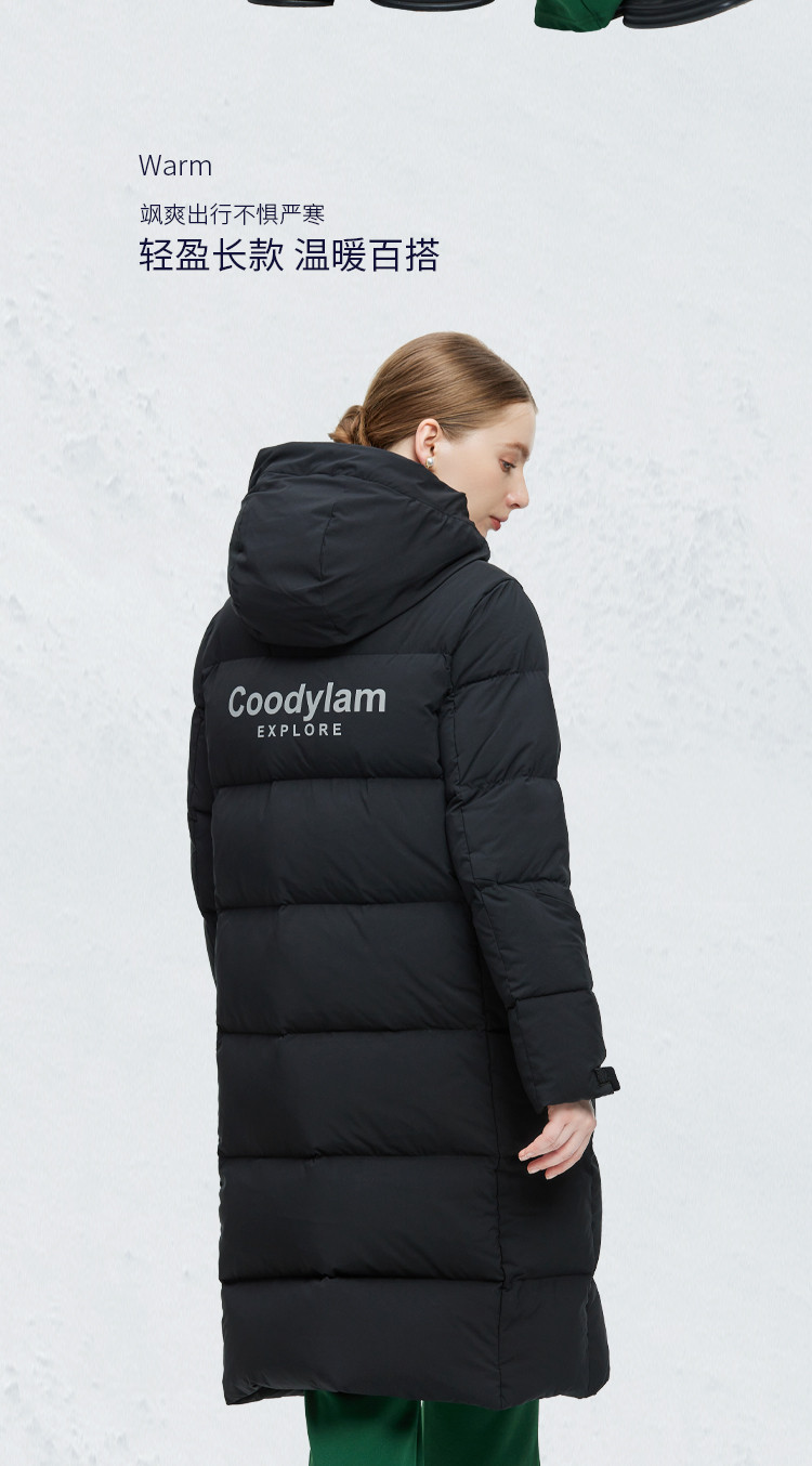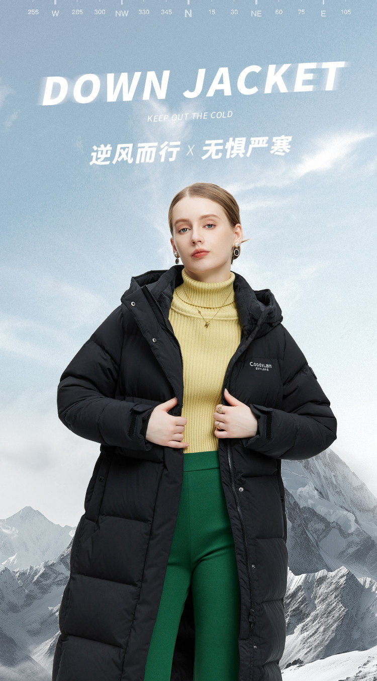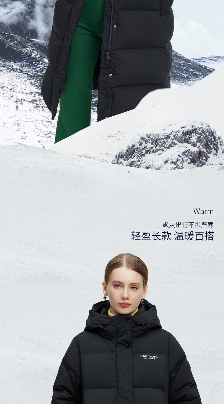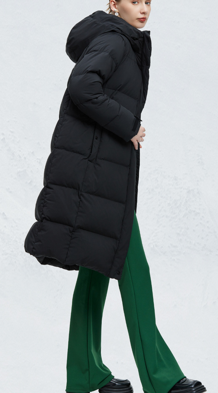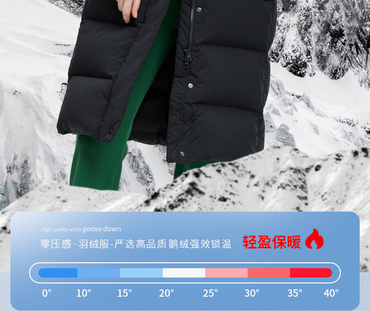 【鹅绒】运动保暖加厚抗寒女式连帽长款极寒鹅绒服 339615