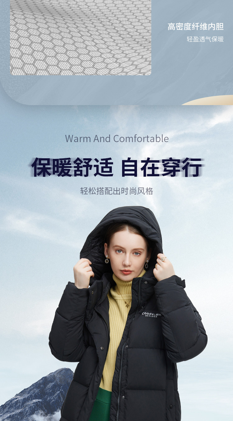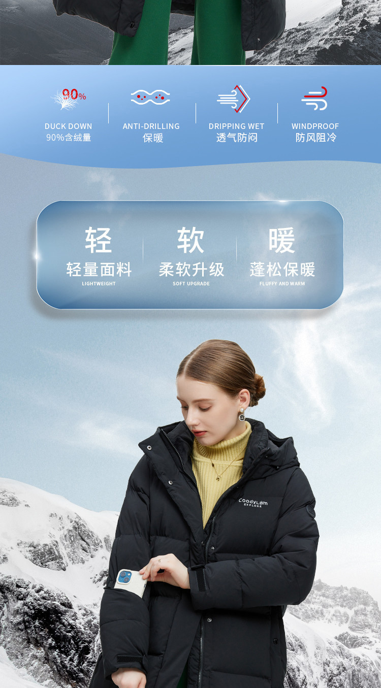 商品名称:【鹅绒】运动保暖加厚抗寒女式连帽长款极寒鹅绒服 339615