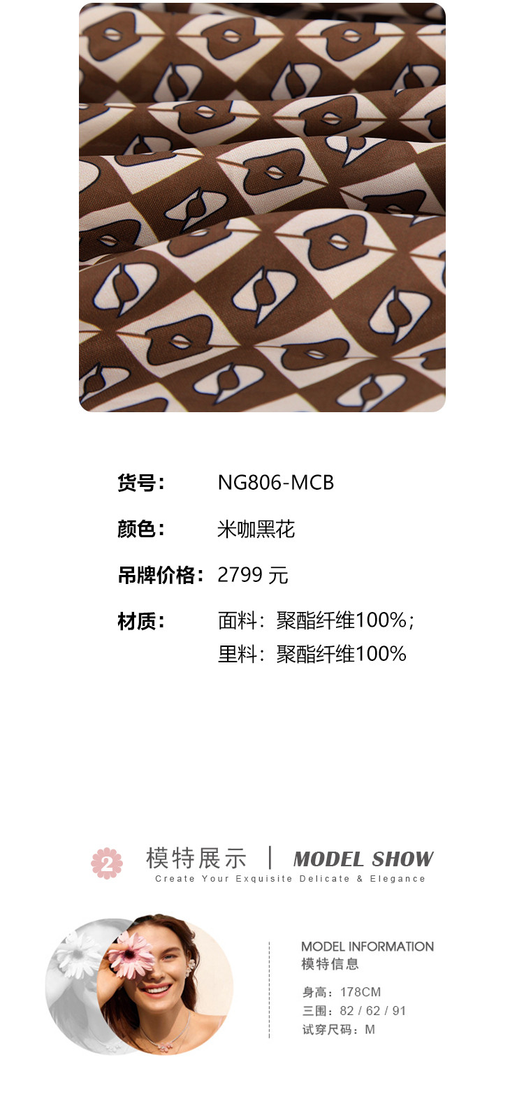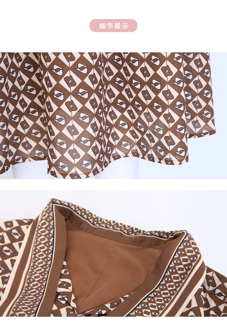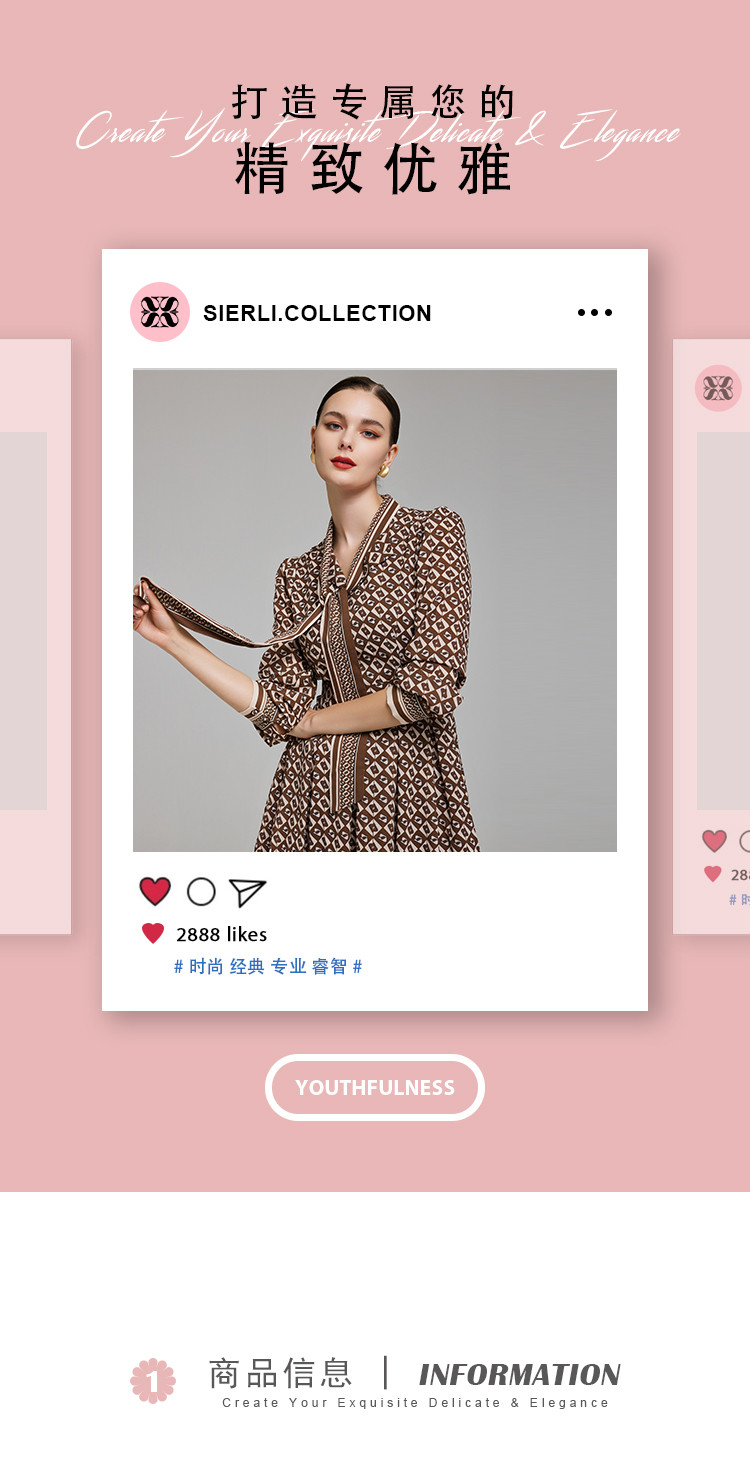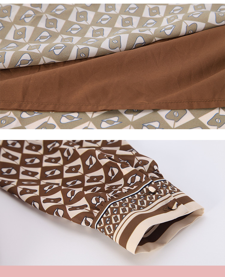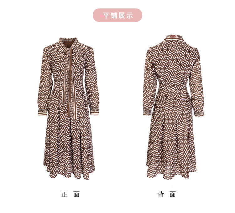 商品名称:定位印花版飘带蝴蝶结下摆收褶通勤白领气质春秋季节连衣裙 089695