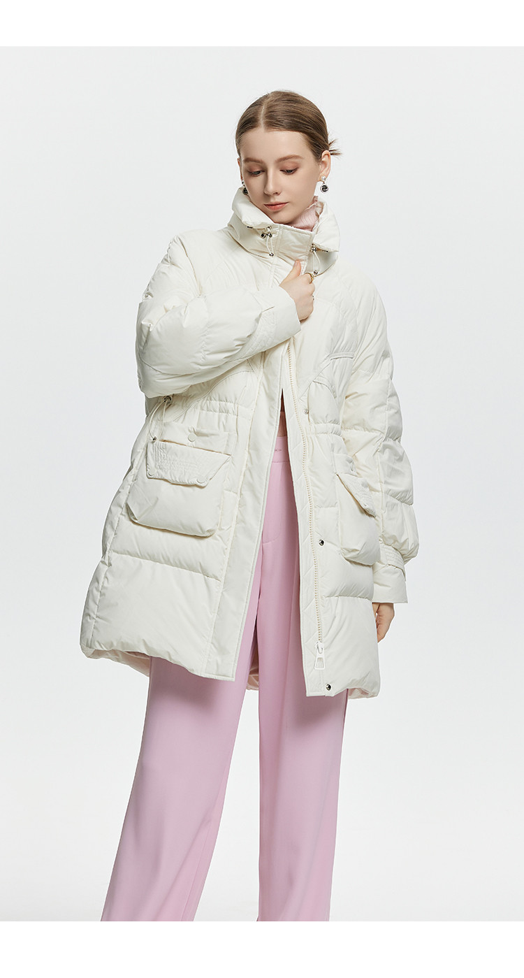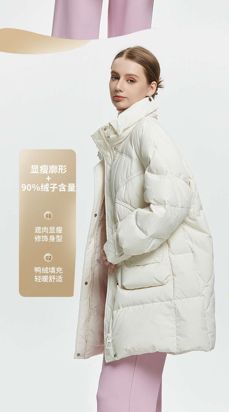 【仙·羽绒】玖姿旗下安娜蔻系列连帽防风白鹅绒中长羽绒服女冬季 639884