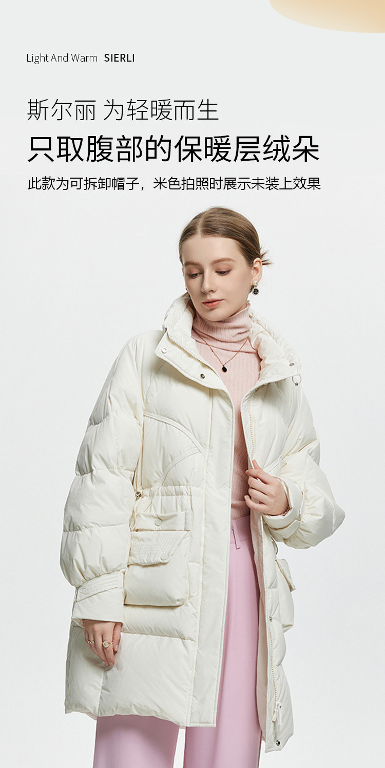 商品名称:复古纯色厚款蓄暖带帽可拆直筒遮肉女式中长款羽绒服 911903