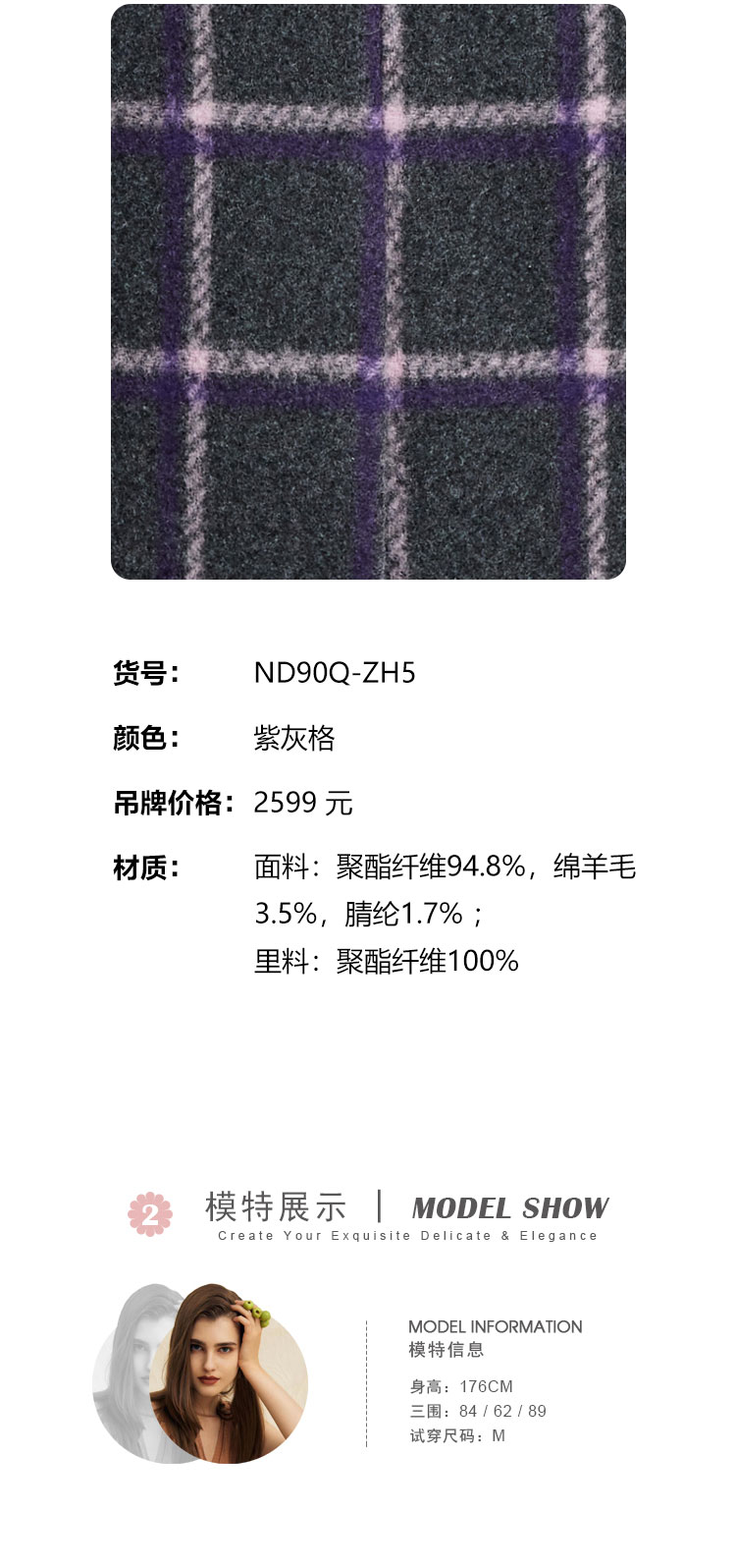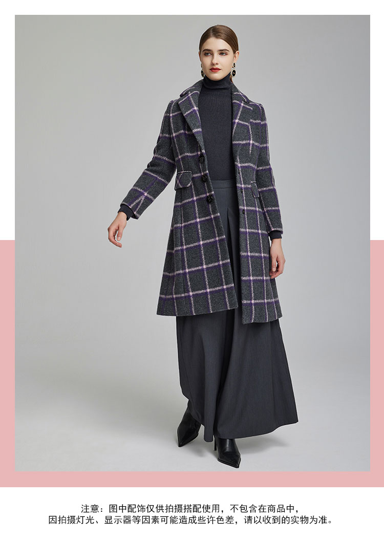 商品名称:[商场同款]秋冬挺括西装领单排扣收腰显瘦干练气质中长款女式大衣 485343