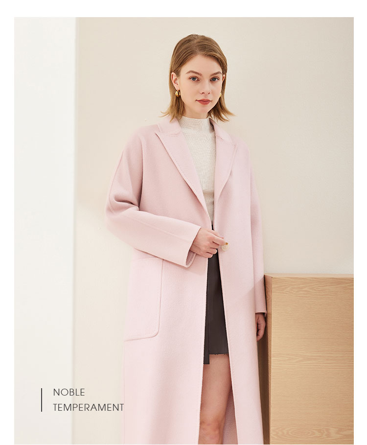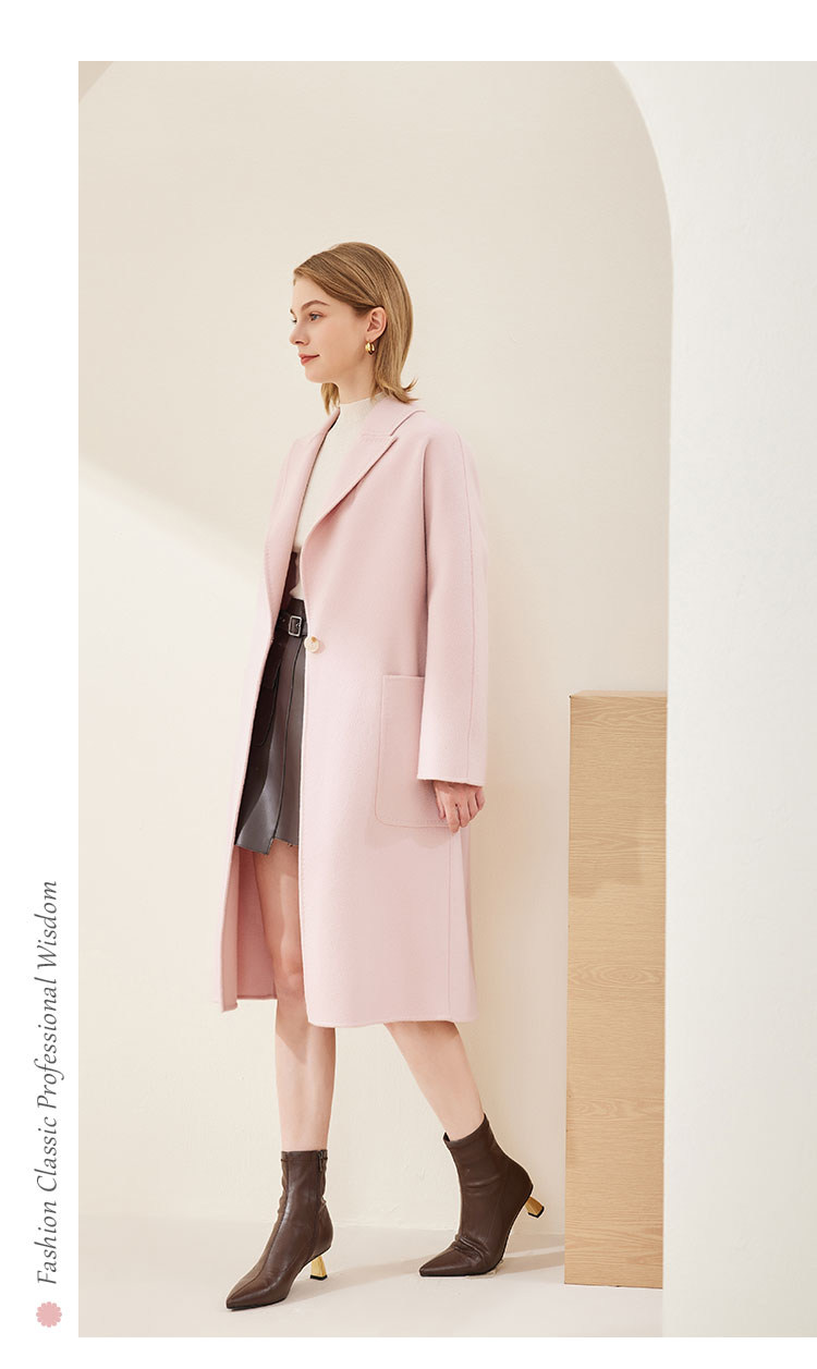 [100%绵羊毛]一粒扣直筒款纯色浪漫温柔赫本风女式大衣外套 925407