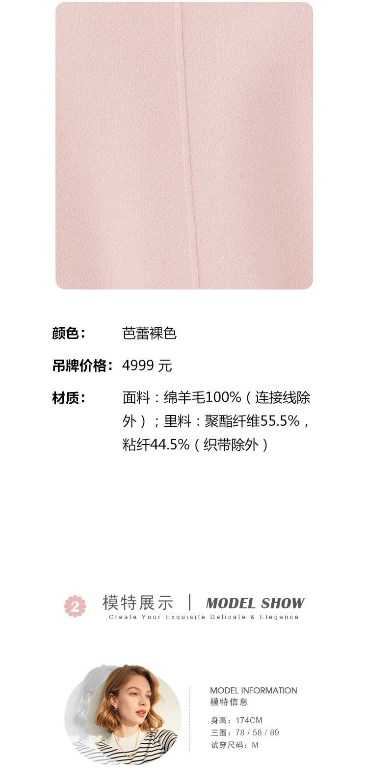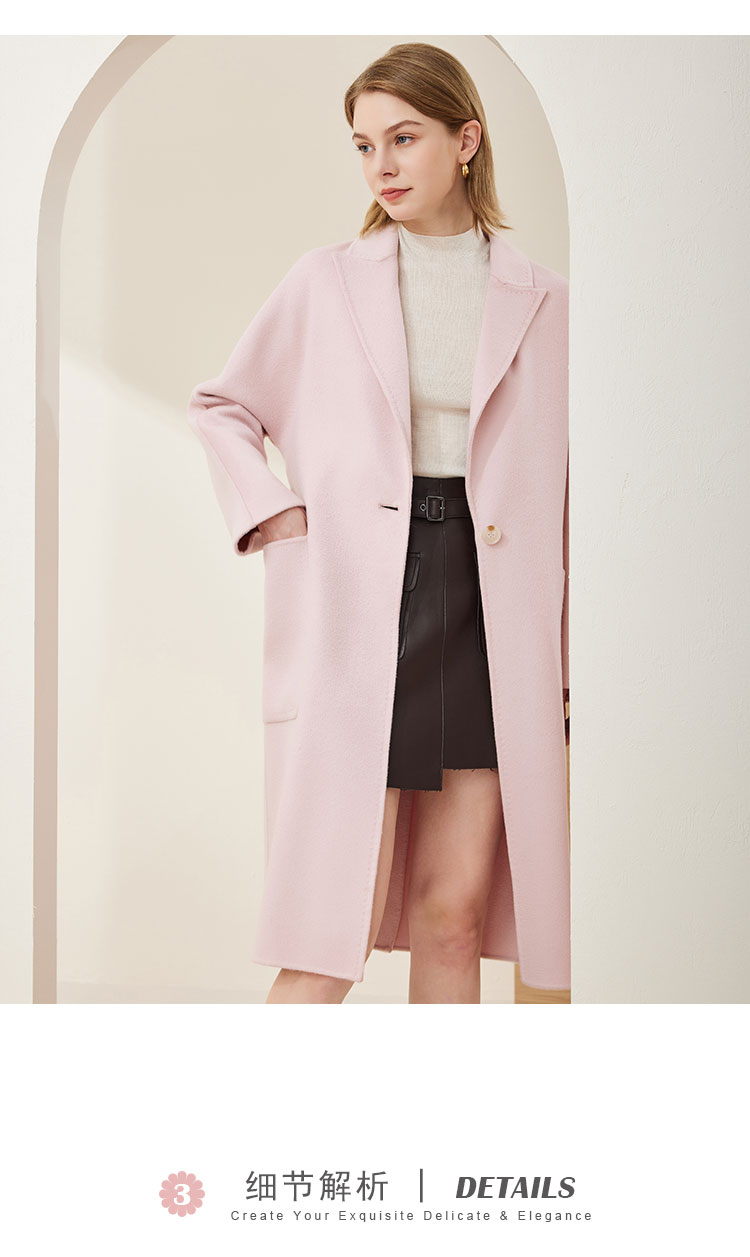商品名称:[100%绵羊毛]一粒扣直筒款纯色浪漫温柔赫本风女式大衣外套 925407