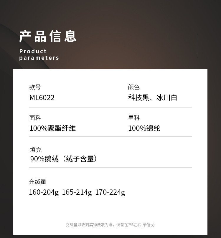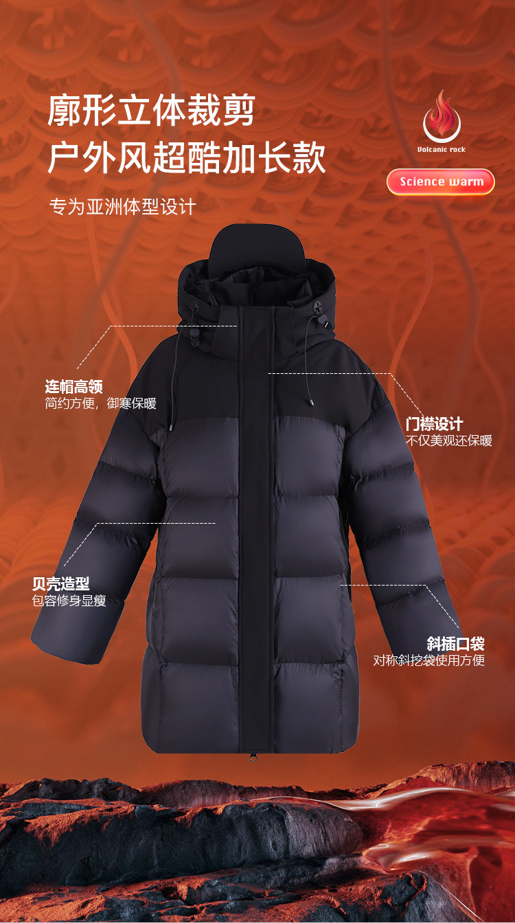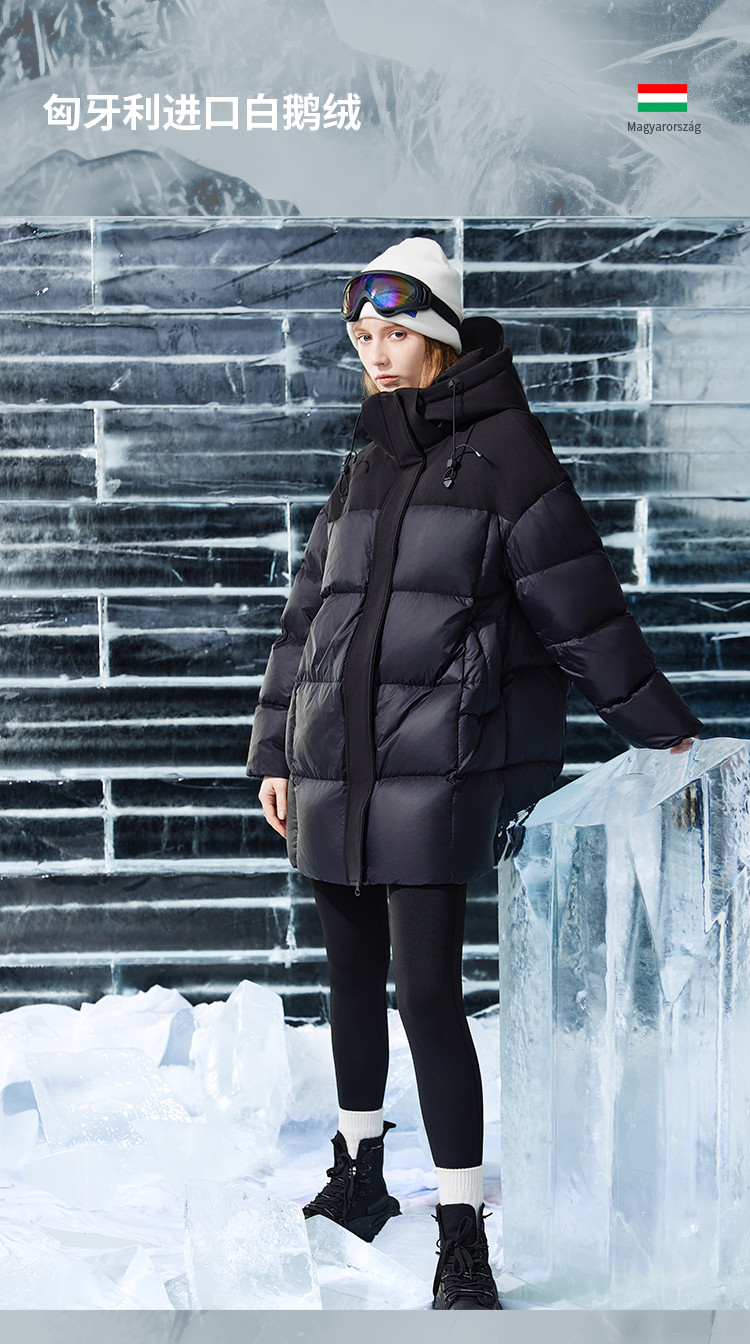 商品名称:【鹅绒】羽皇系列户外运动加厚款防风连帽休闲羽绒服 008479