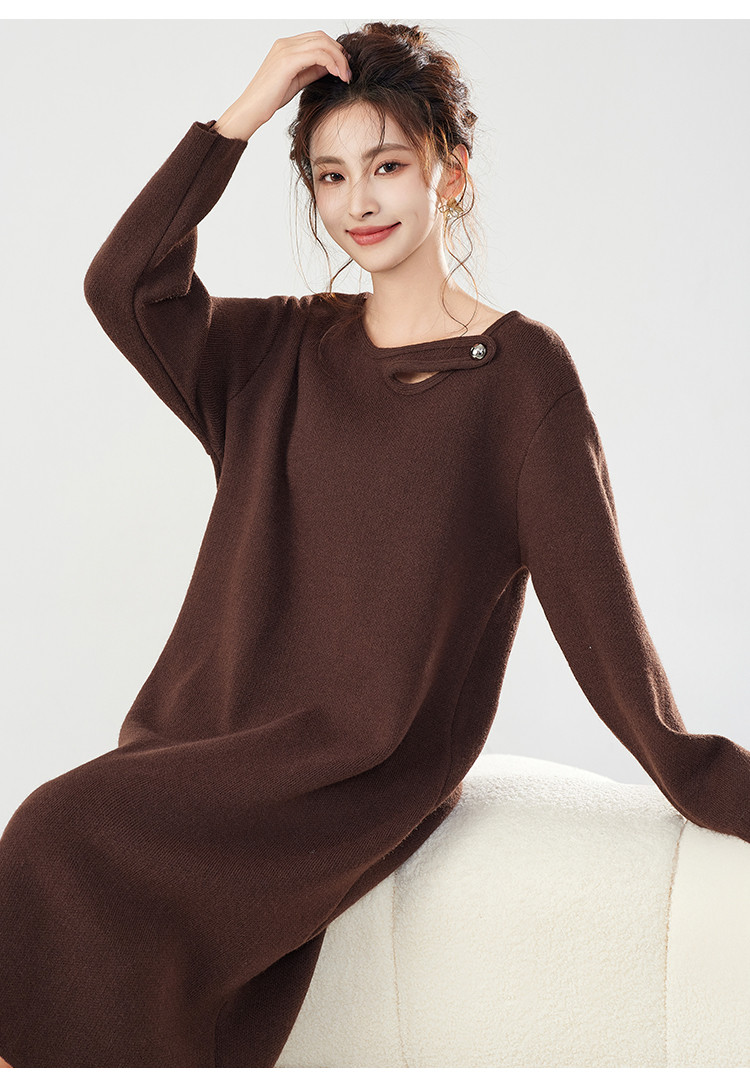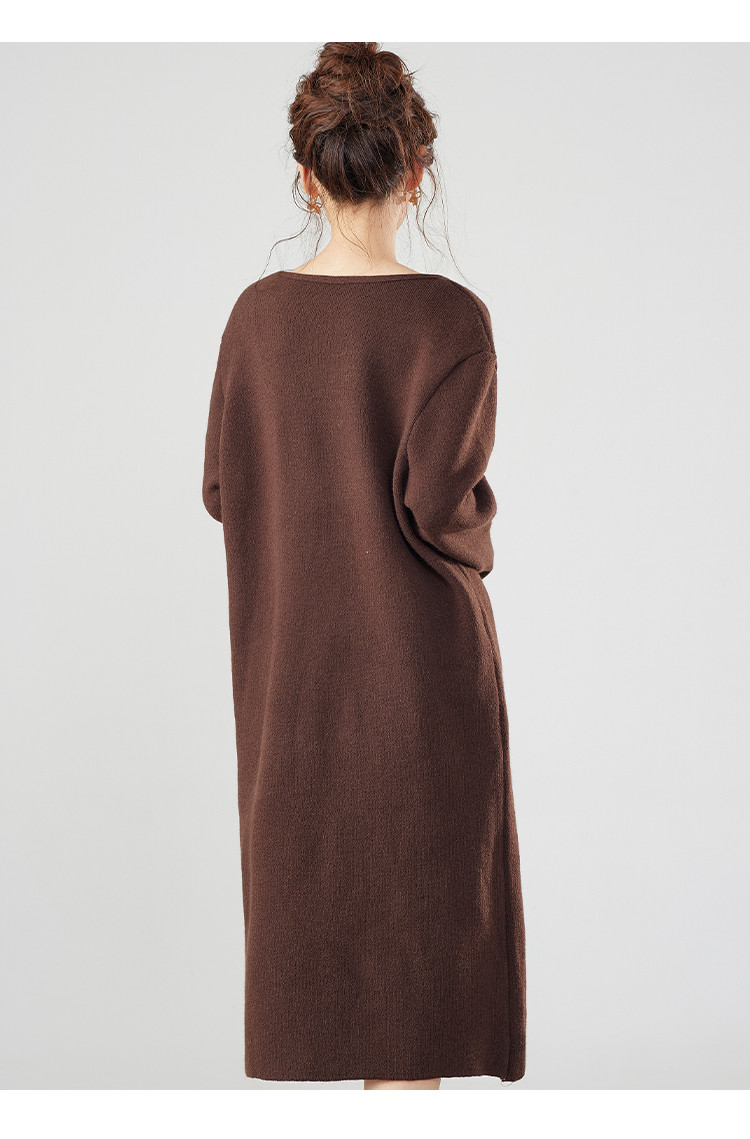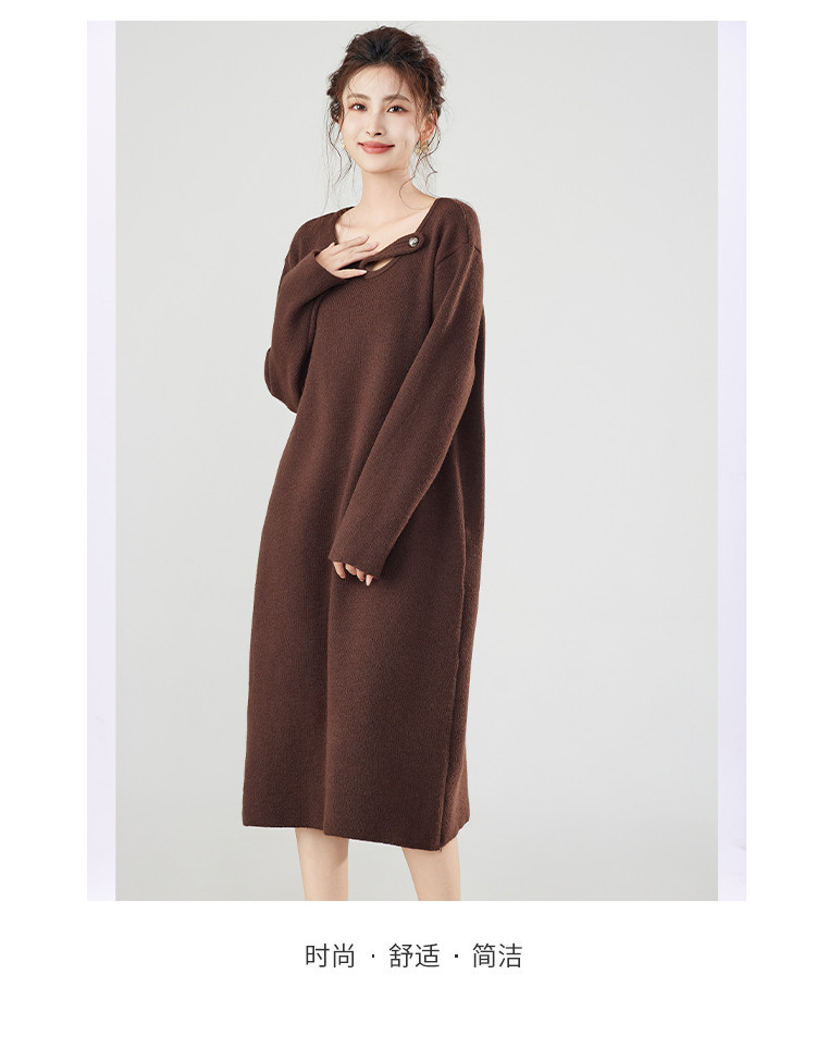 【配大衣】秋冬时尚V领长袖过膝打底针织连衣裙女 340127