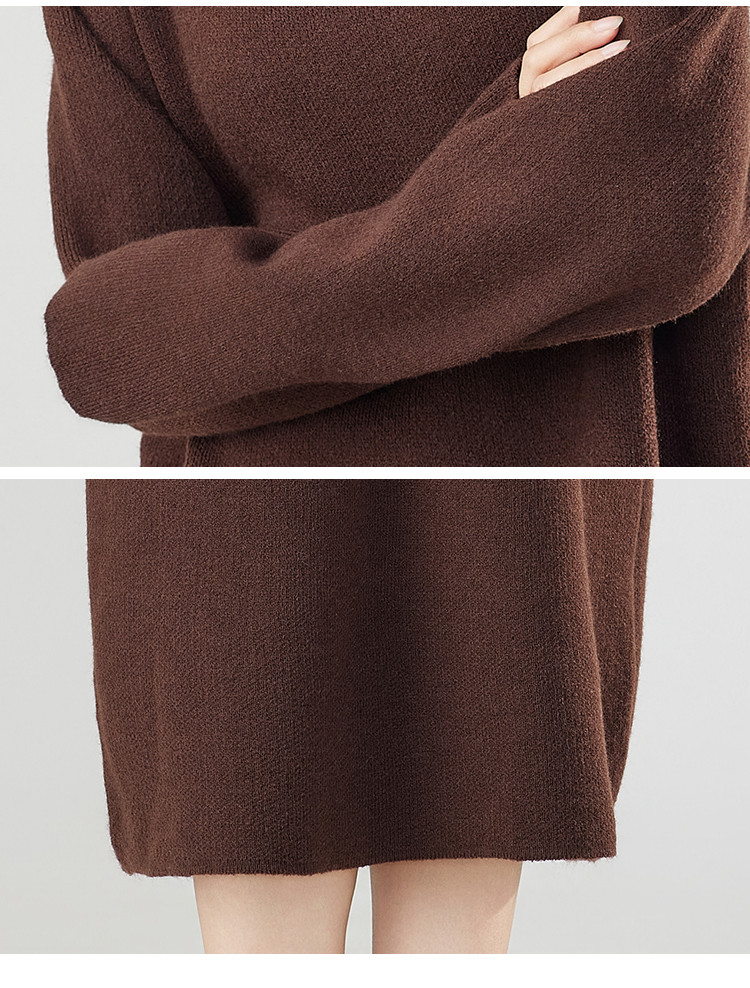 秋冬宽松慵懒风长袖毛衣大翻领针织打底过膝连衣裙女 520287