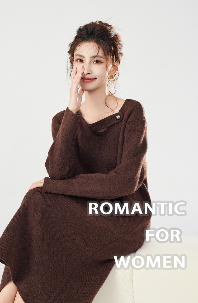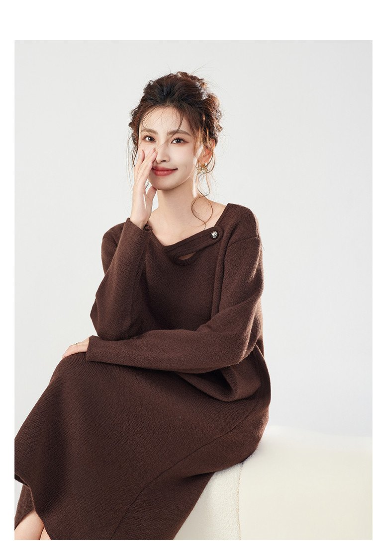 商品名称:秋冬法式设计感宽松小众慵懒风毛衣裙针织连衣裙女 348319