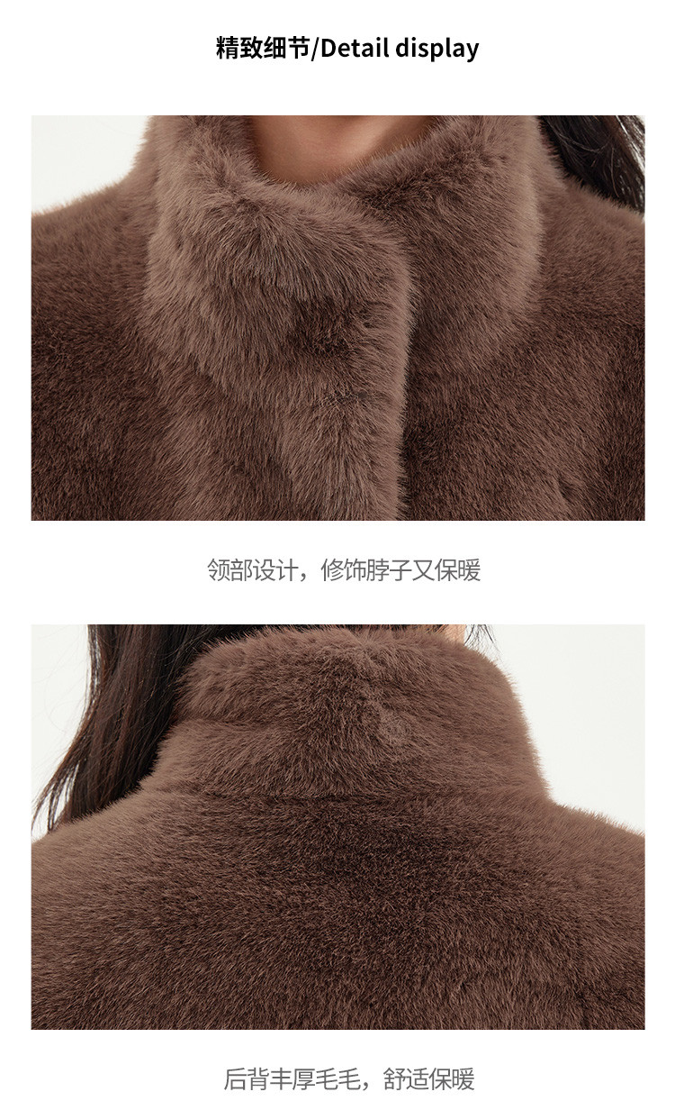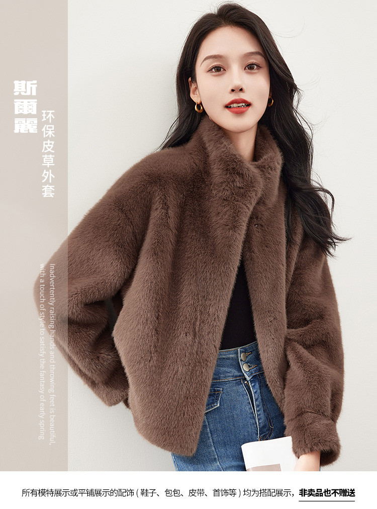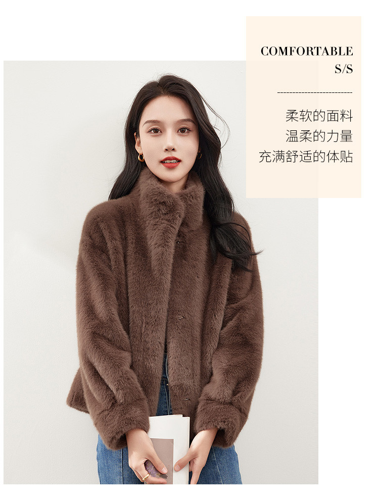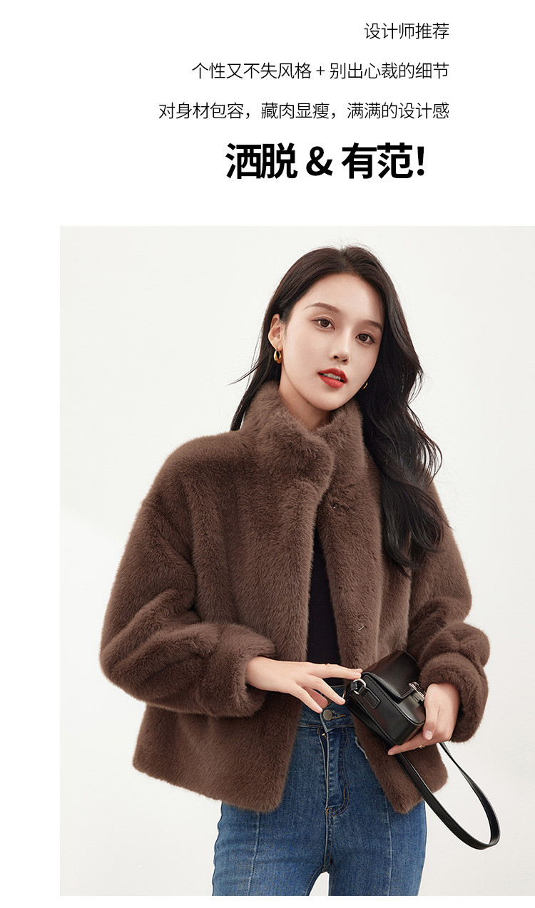 商品名称:冬季小个子保暖仿貂绒环保皮草女式时尚休闲短款立领仿皮草外套 787615