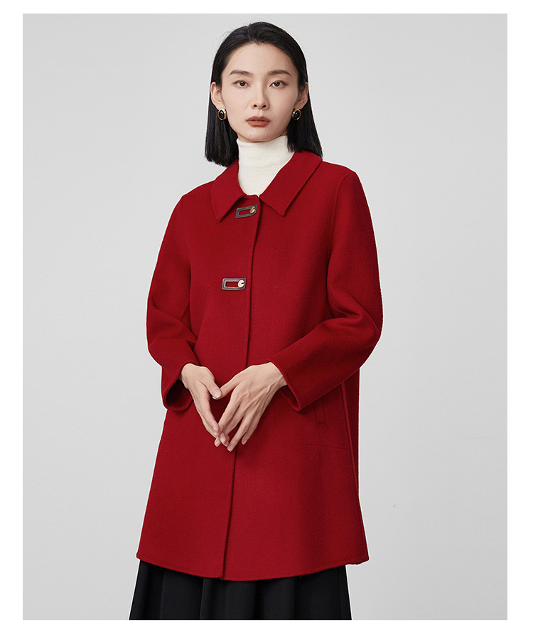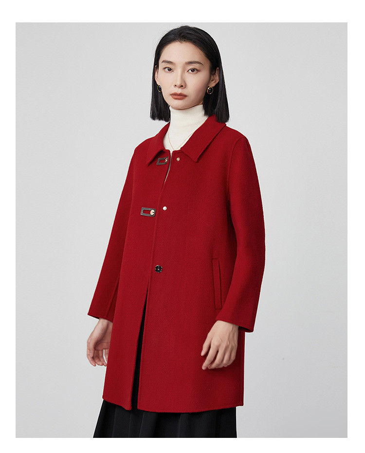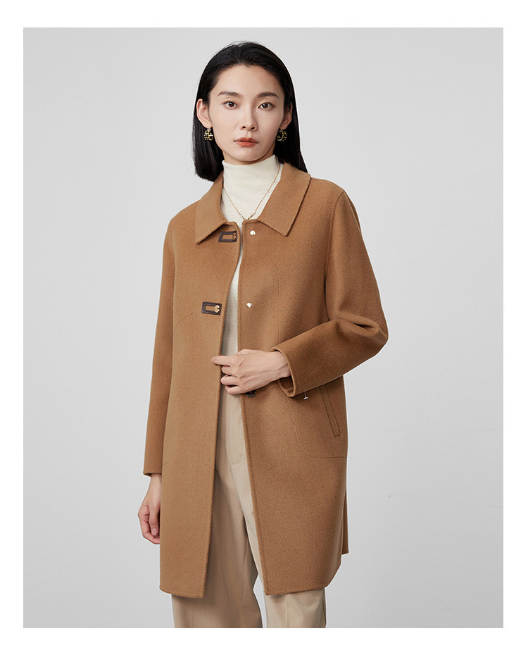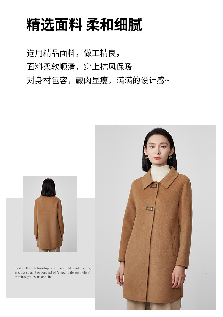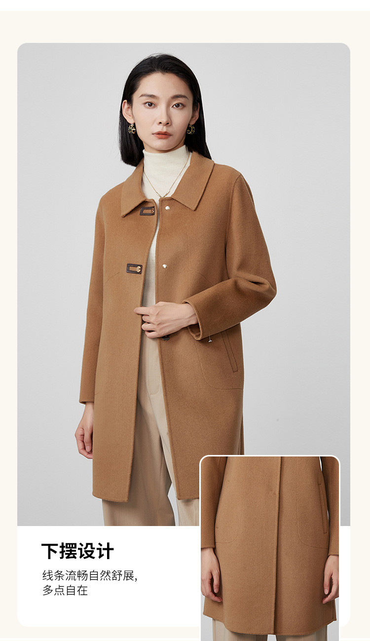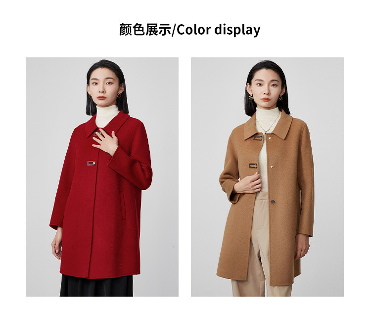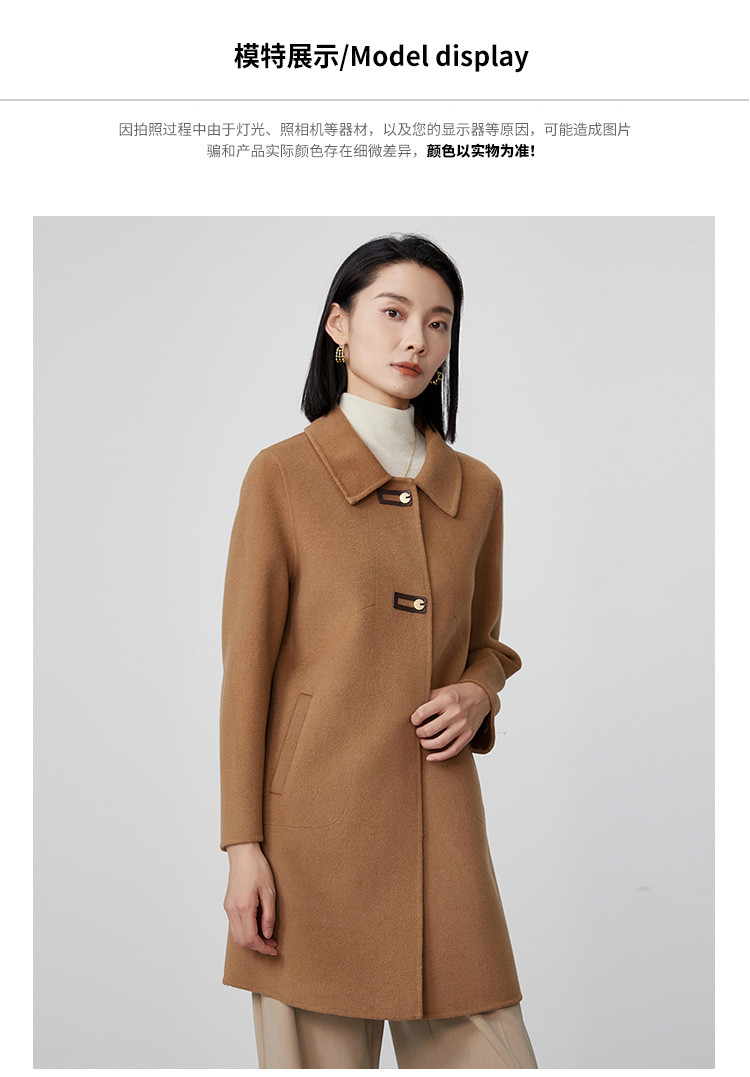 【100%绵羊毛】春秋时尚羊毛大衣女式中长款毛呢外套 922847